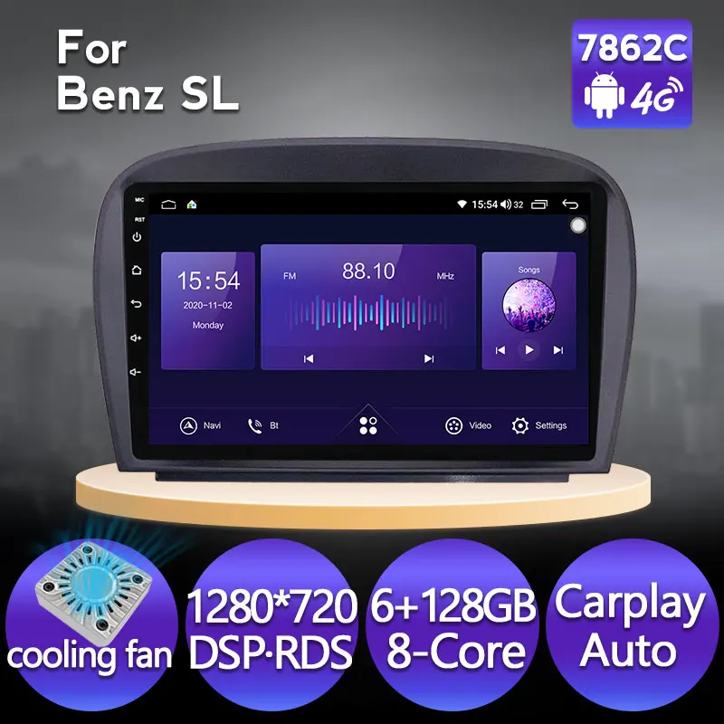 Автомобильный мультимедийный плеер 9 ''android11 6G + 128G gps для Mercedes SL R230 SL350 SL500 SL55 SL600 SL65 встроенный carplay DSP IPS RDS 4G