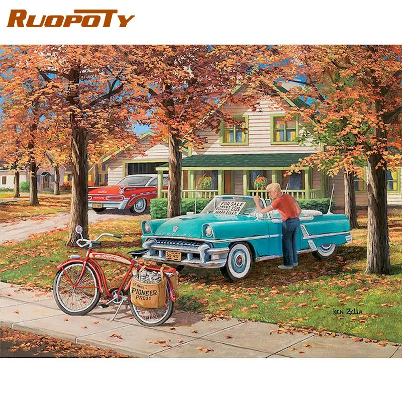 Рамка RUOPOTY DIY Краска для рисования по номерам синяя Автомобильная Ландшафтная краска по номерам для домашнего настенного искусства уникальный подарок