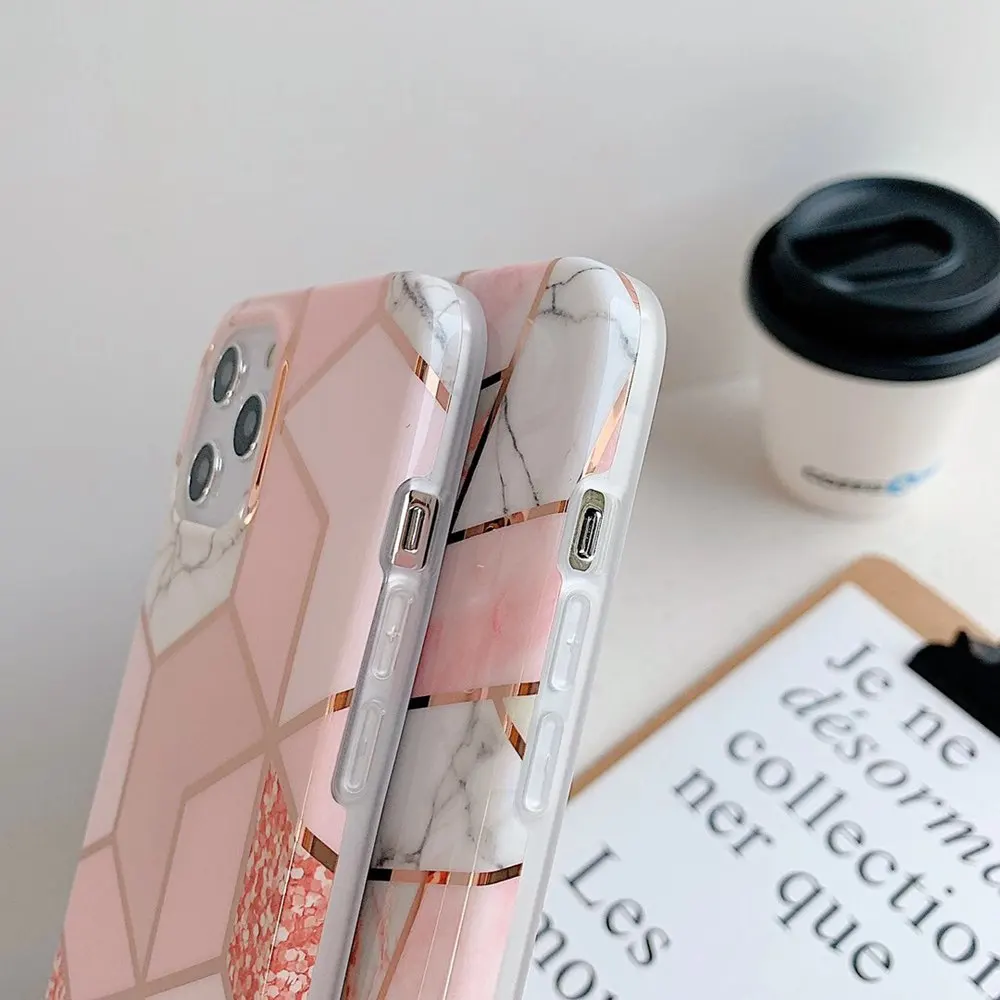 Чехол с геометрическим рисунком под мрамор для iphone 7 XR 11 Pro M...