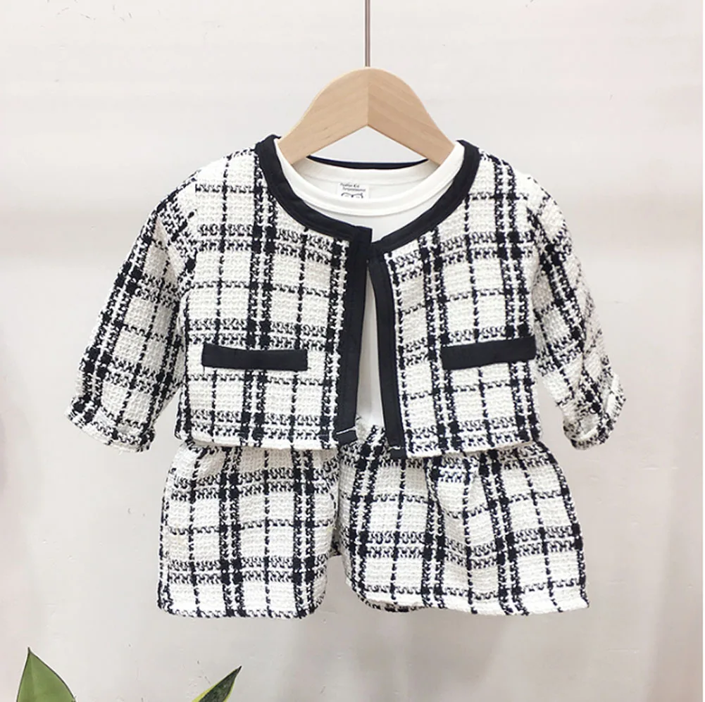 От 1 до 6 лет комплект клетчатой одежды для маленьких девочек, вяза...
