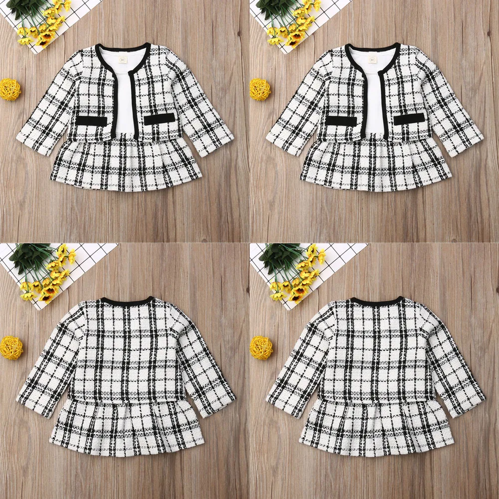 Осенне-зимний комплект детской одежды из 2 предметов для маленьких девочек, Модное пышное клетчатое пальто платье-пачка вечерние комплекты одежды одежда для маленьких девочек