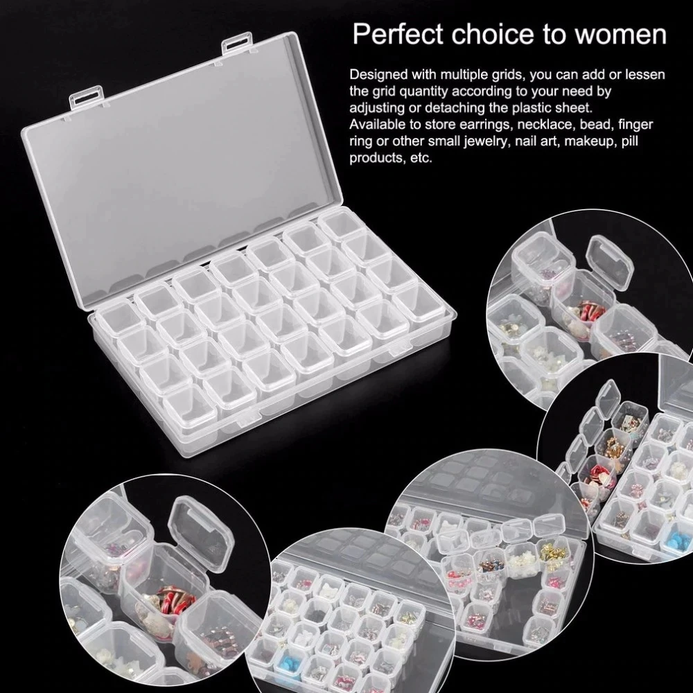 1 комплект, 28 пустых гвоздей, коробка для хранения ногтей, Чехол Для Стразы, органайзер из сплава, чехол, коробка для хранения бусин, ювелирных изделий