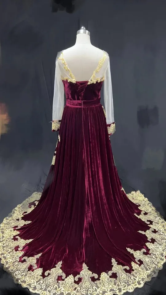 Бордовый Aixiangsha бархат марокканский кафтан вечернее платье Аппликации Съемная Алжира в натуральную величину костюм Robe De Soiree Свадебная вечеринка
