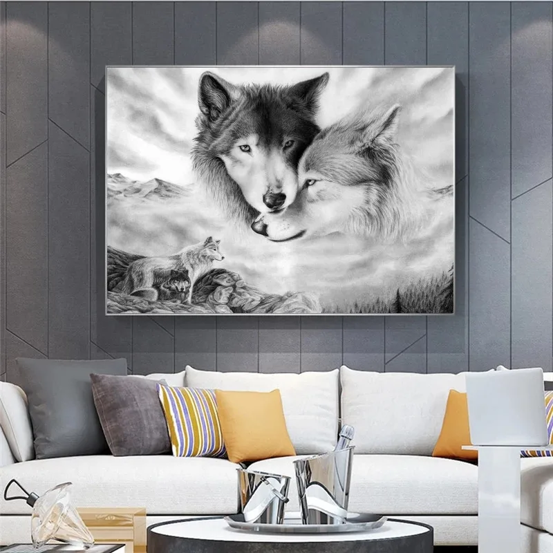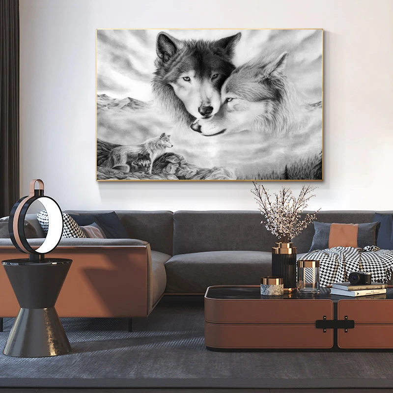 Черно-белые Львы животные Искусство Холст плакат дикий пейзаж живоп...