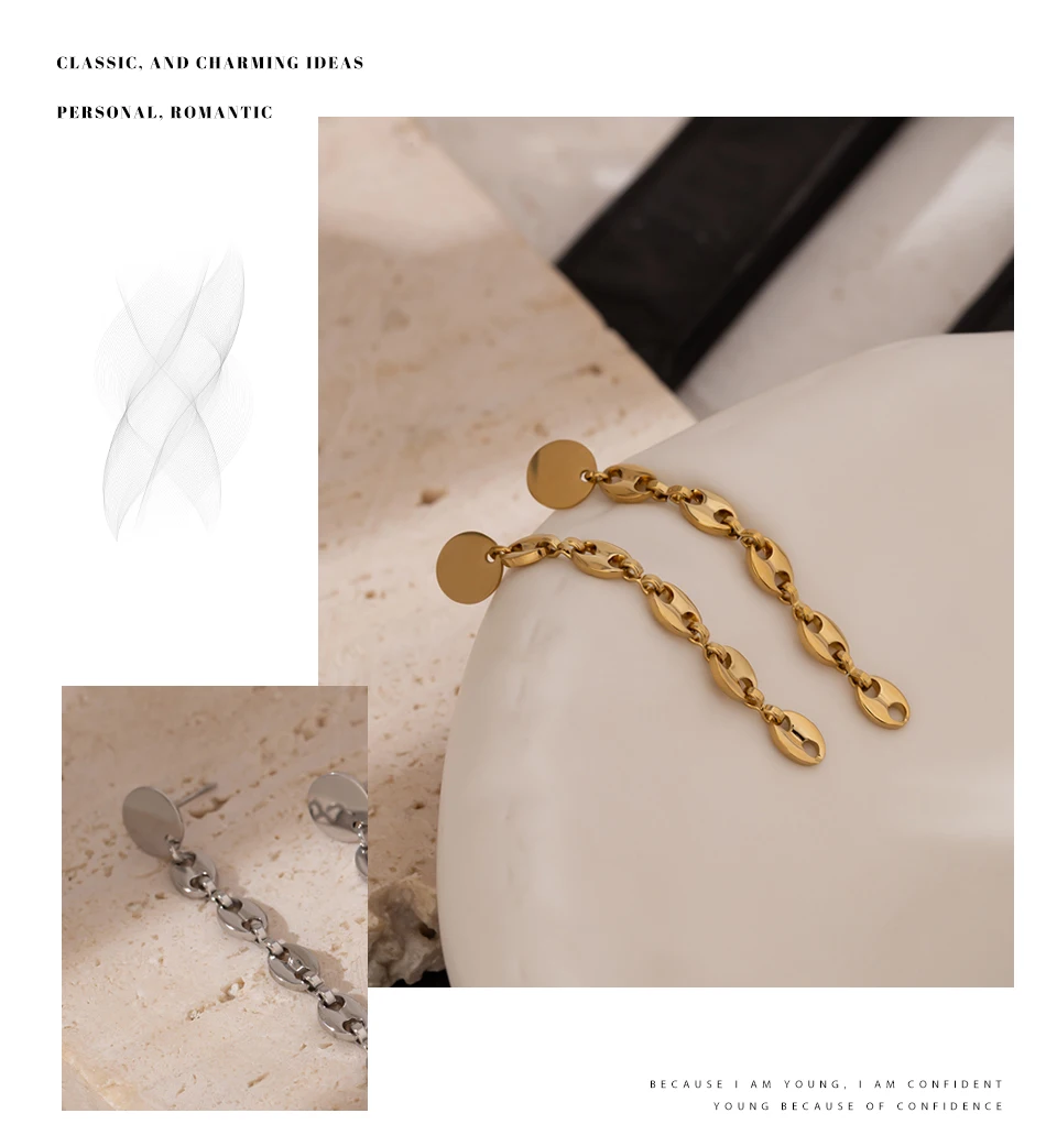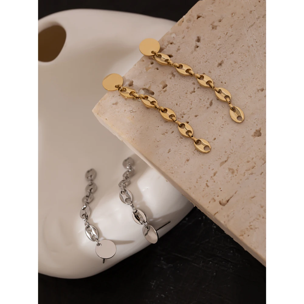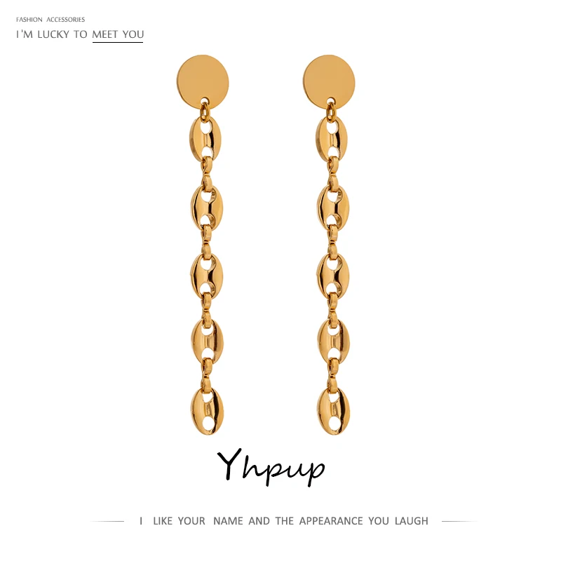 Серьги Yhpup из нержавеющей стали женские, Длинные геометрические висячие серьги из металла 18 К, Подарочная бижутерия на Рождество