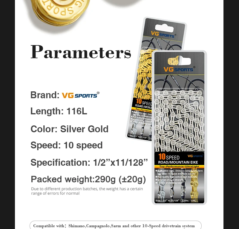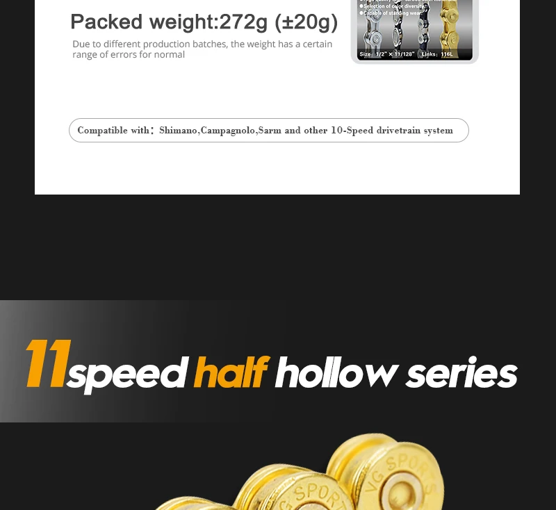 Спортивная велосипедная цепь VG, 8, 9, 10, 11 скоростей, ультралегк...