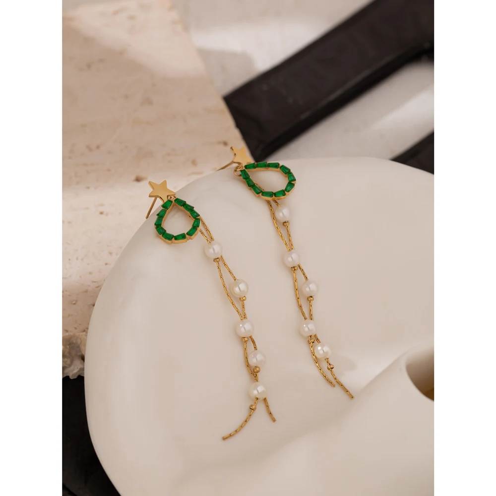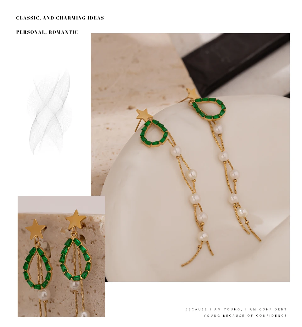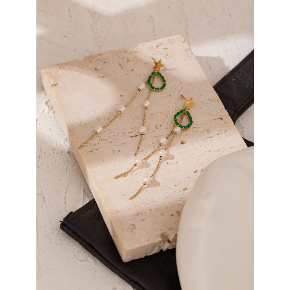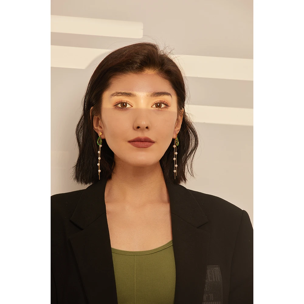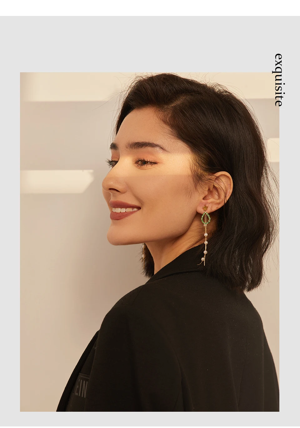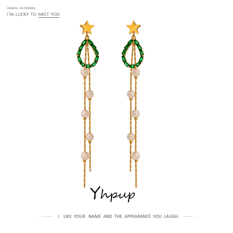 Серьги Yhpup с имитацией жемчуга, длинные висячие серьги-Кисточки Из Нержавеющей Стали, нежные серьги с фианитами 2021