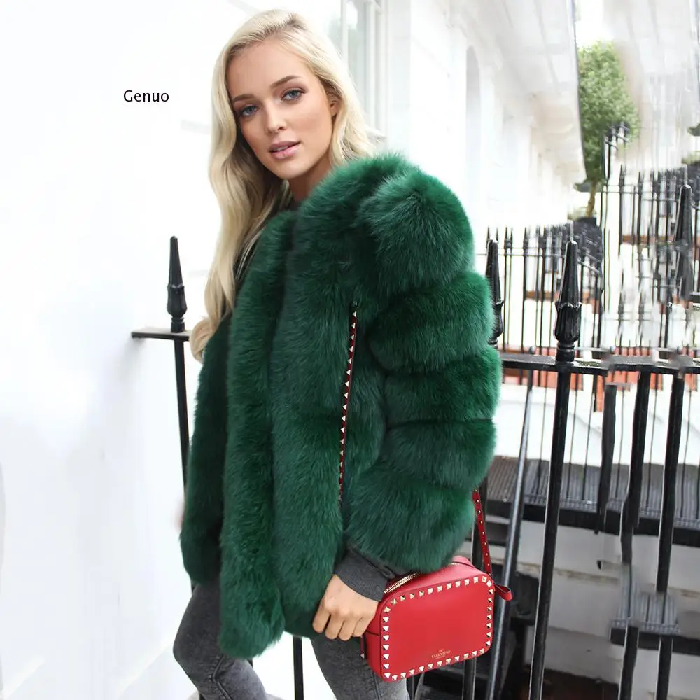 Из искусственного меха черно-бурой лисицы вертикальный укороченные пальто из искусственного меха лисы для женщин из искусственного лисьего меха куртка Женская зимняя обувь роскошный вид, толстая подошва, теплая верхняя одежда высокого качества
