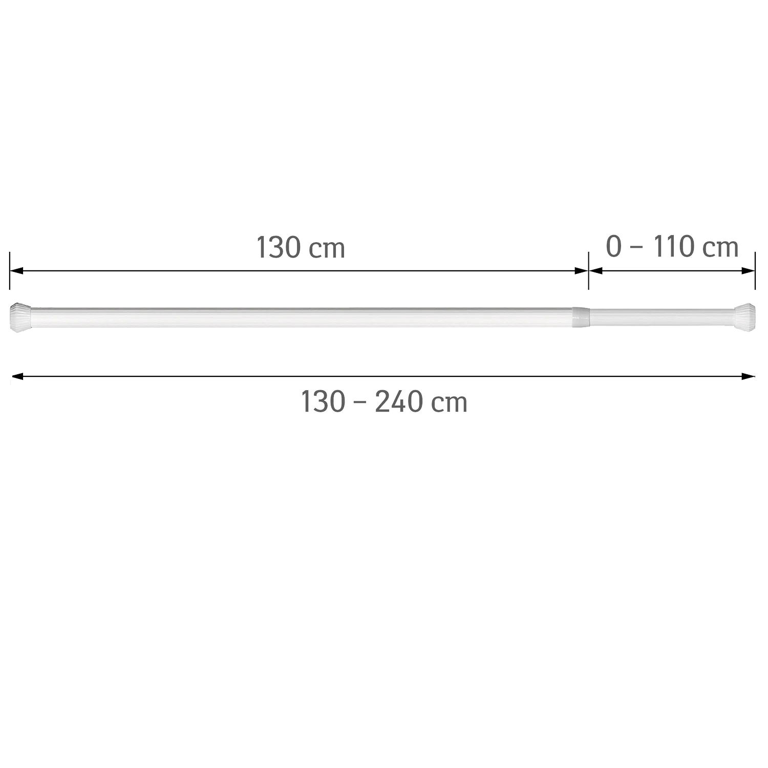 Tatkraft WHIRLIGIG Карниз для ванной комнаты, телескопический. Длину карниза можно регулировать 130-240, ø2.5 cm, инновационный механизм установки, простой и надежный в использовании. Материал: окрашеный алюминий, пластик