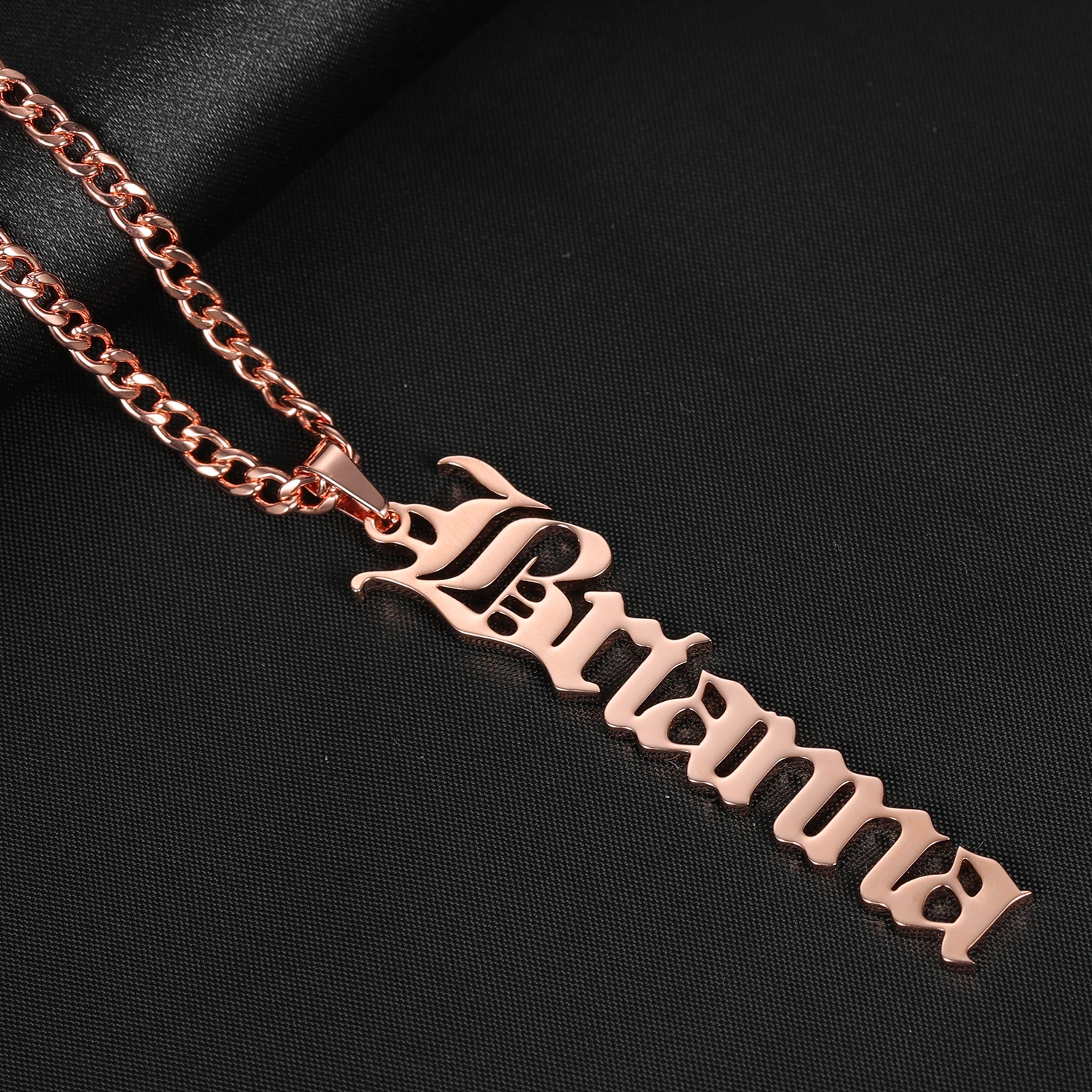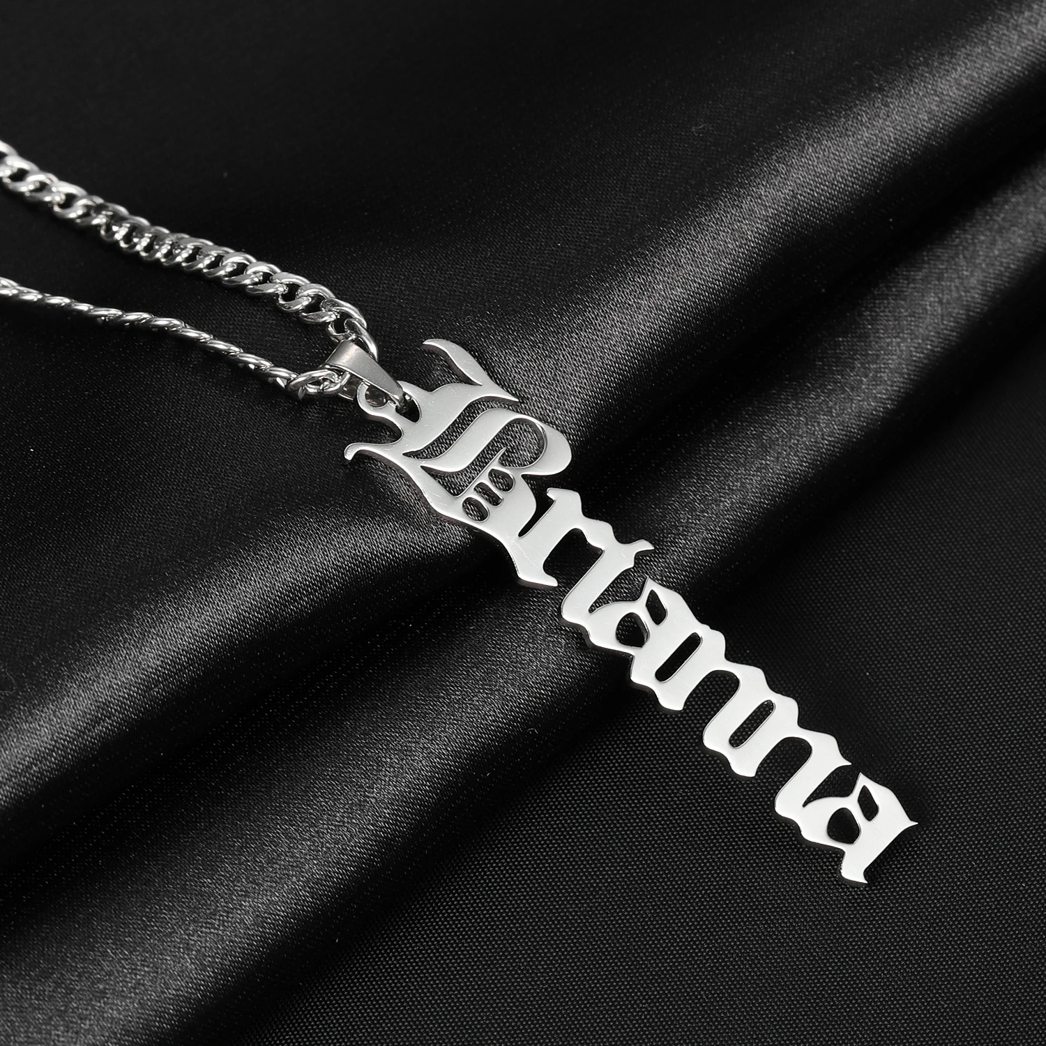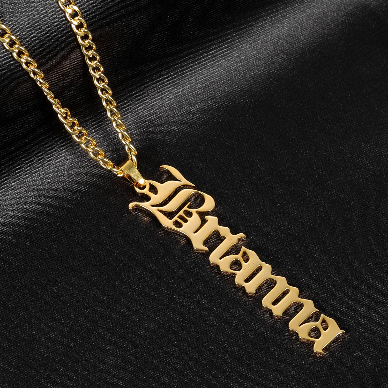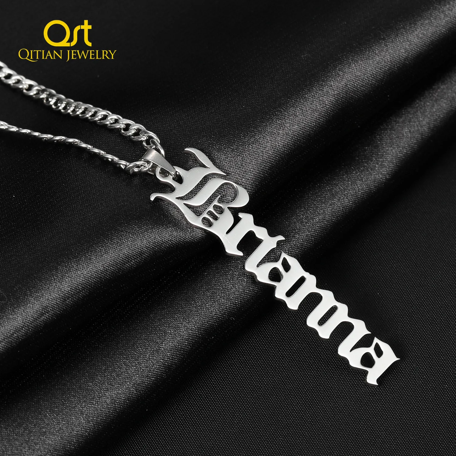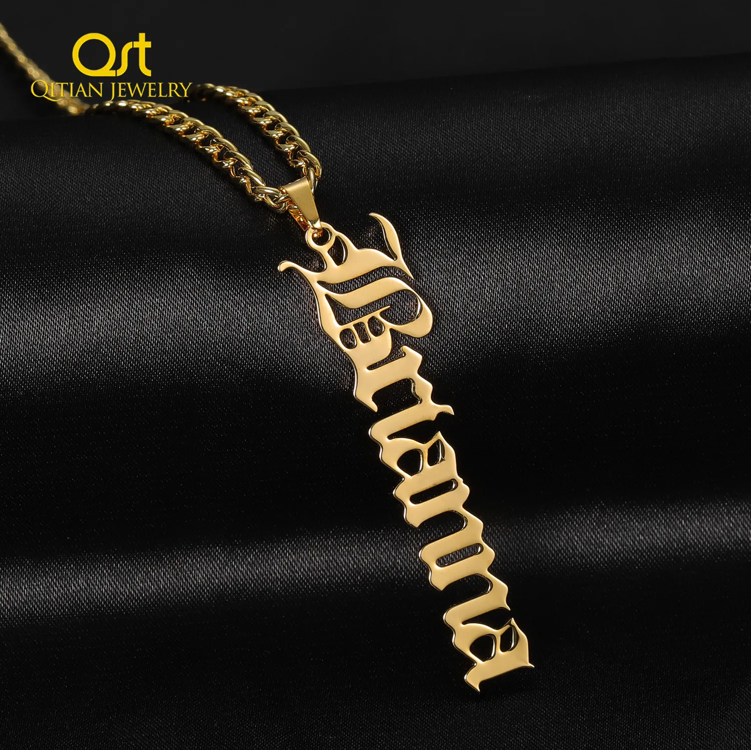Персонализированные Вертикальная старинном английском табличка с именем Цепочки и ожерелья 18kgold покрытием Нержавеющаясталь колье вертикальные подвески Рождественский подарок