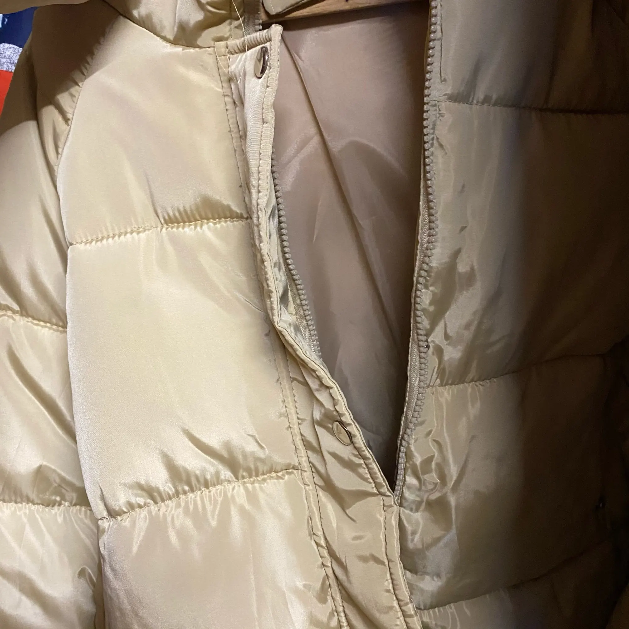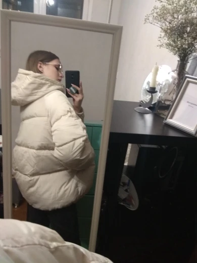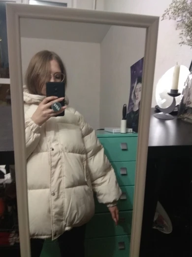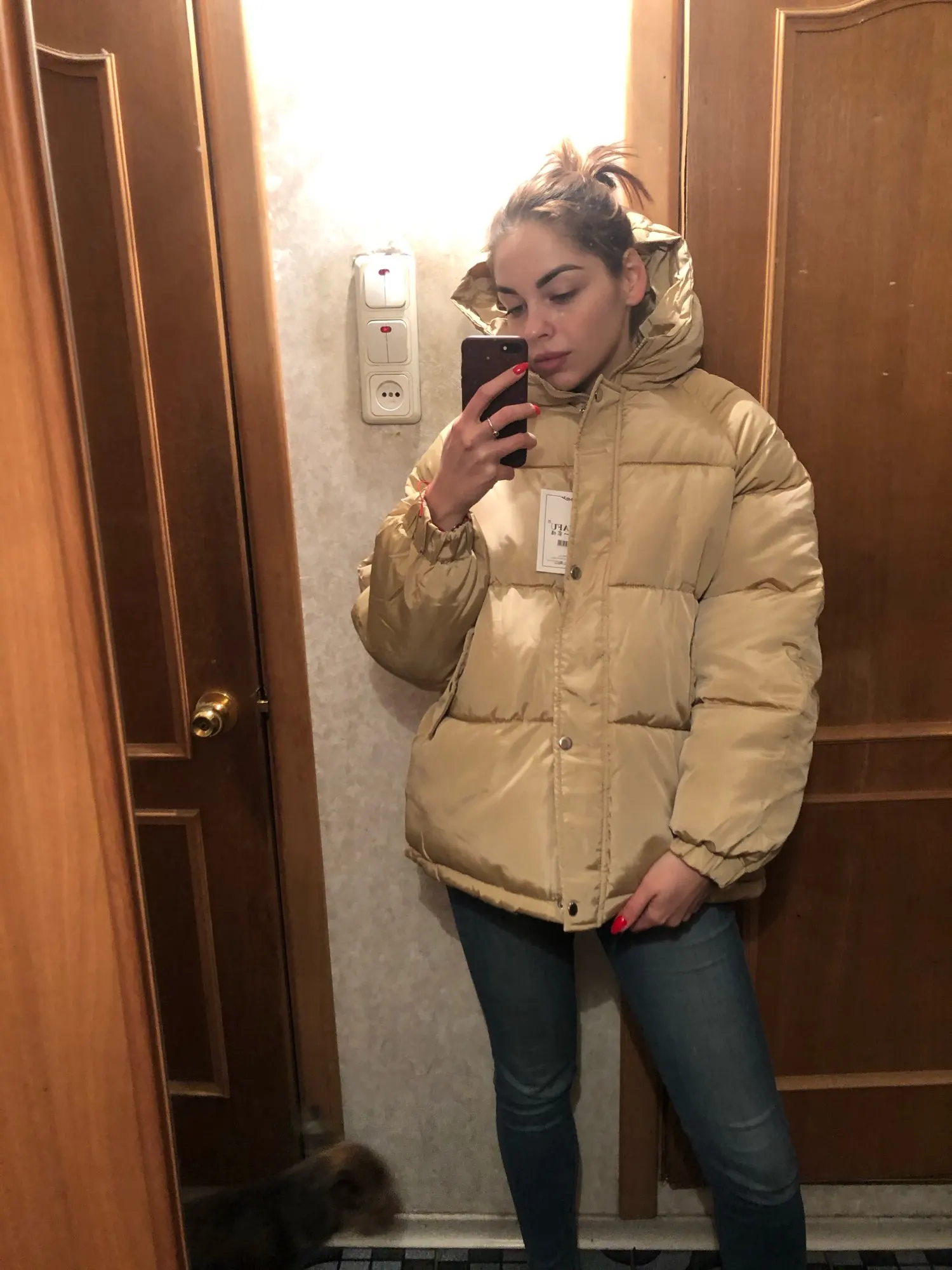 Куртка просто топ, особенно для своей цены:) изначально на рост 173 и параметры 90-67-96 заказала M, но потом засомневалась и написала продавцу, который подтвердил, что мне лучше взять L. Продавец невероятно милый, отвечает на все вопросы и очень помогает! Сама куртка с блеском, цвет - беж, немного уходящий в желтый, тёплый оттенок, но мне нравится. Немного ниже бёдер на мой рост.