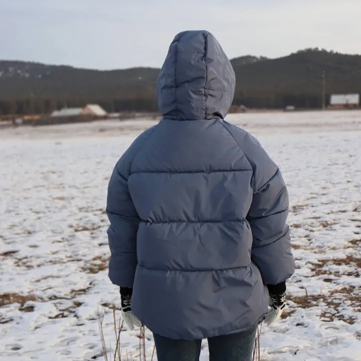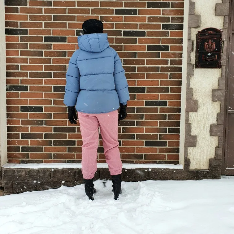 Теплая куртка с капюшоном. Доставка около трех недель почтой России. Качество фабричное. У прода 6 цветовых решений, мой цвет синий. Очень красивый оттенок. На параметры 92/72/98 и рост 170 см взяла размер xs поскольку хотелось не сильно оверсайз. По плечам и объёмам села хорошо, нехватило длины рукавов, но в др размерах ситуация такая же. Так что на рост лучше до 165 см. В остальном куртка классная, материал хороший, фурнитура качественная, дизайн стильный, очень тёплая.