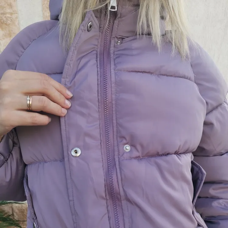Куртка очень тёплая. Цвет красивый, нежный. Застегивается на замок и кнопки. Все работает исправно. Внизу затягивается карабином. Есть 2 кармана. На мой рост 171, ог-86, от-69 я взяла размер S, села хорошо, оверсайз. Единственное рукава коротковаты. А так куртка шикарная. Качество отличное. Доставка быстрая с отслеживанием.