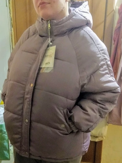 Куртка неплохая, модный оверсайз. На 90-74-98 села хорошо. Было много ниток, с одной стороны кулиска не затягивается, т к верёвка прошита нитками (брак), - открыла спор, продавец вернул небольшую часть суммы. В целом - шуршащая синтетика.