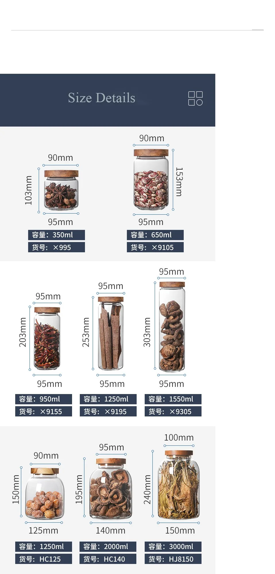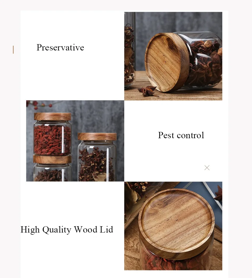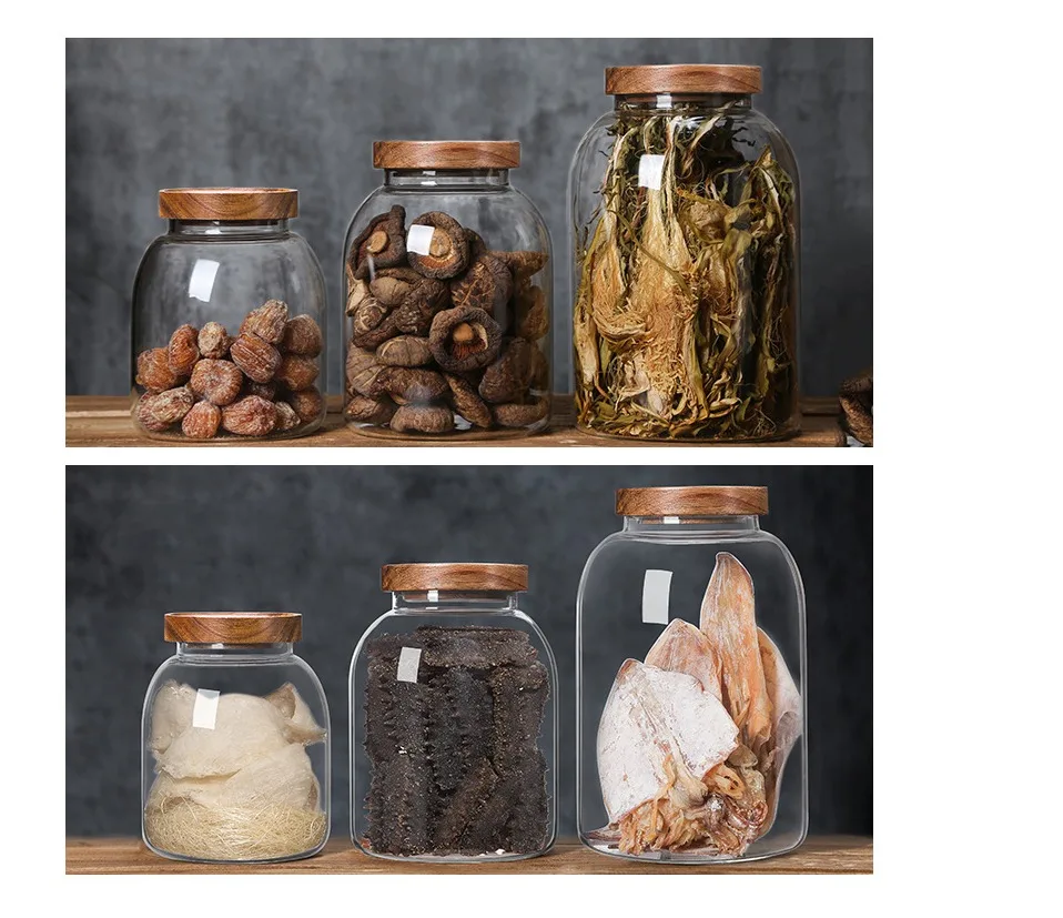 350-3000 мл деревянная крышка стеклянные кухонные бутылки для хранения банки большой пищевой контейнер для зерен чай кофейные зерна емкость для конфет