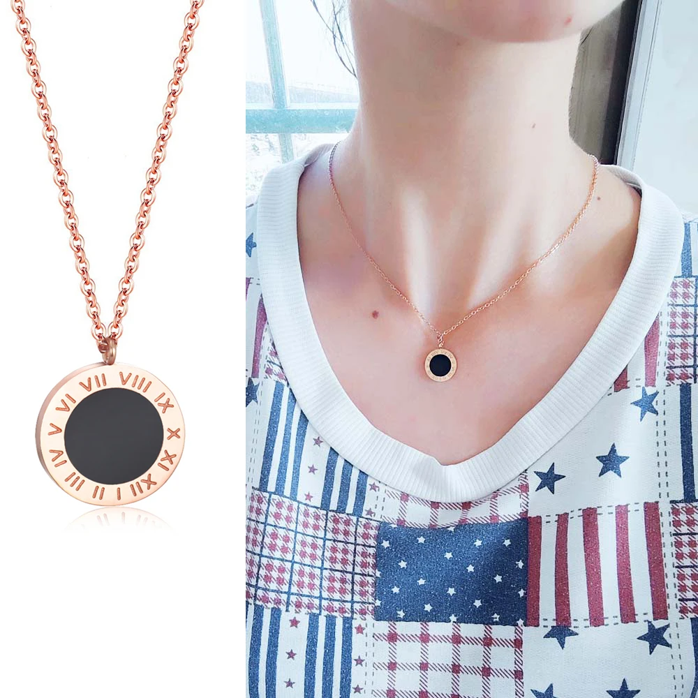 Классическая римская цепочка из титановой стали черно-белая ожерель...