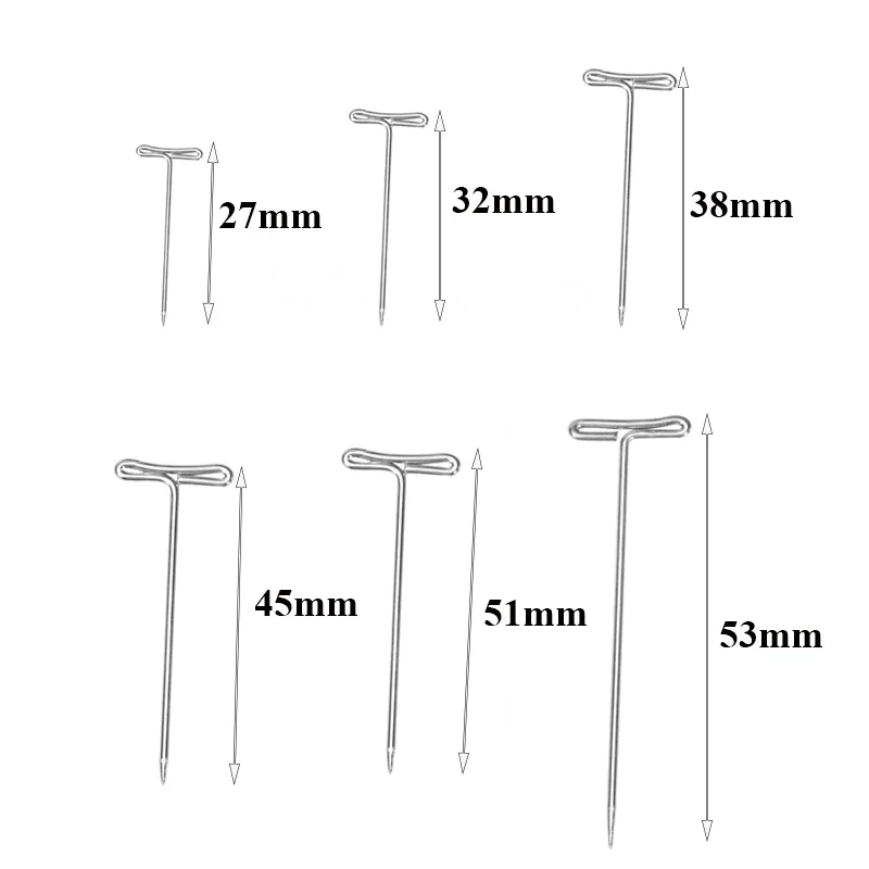 600 шт. T булавки для создания украшений ручной работы Вязание Швейные Ремесло микс Размеры 273238455153 мм Т-образными шпильки Holding парики Дисплей на холсте головы