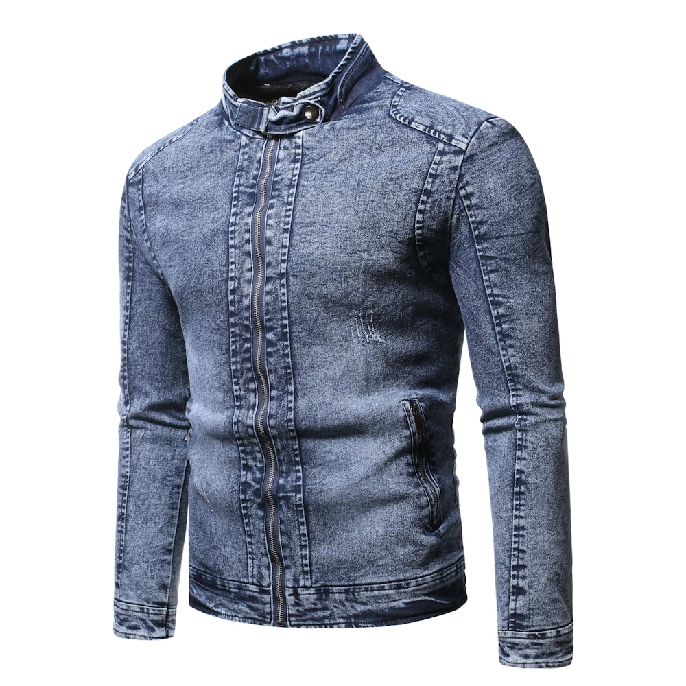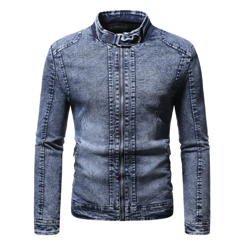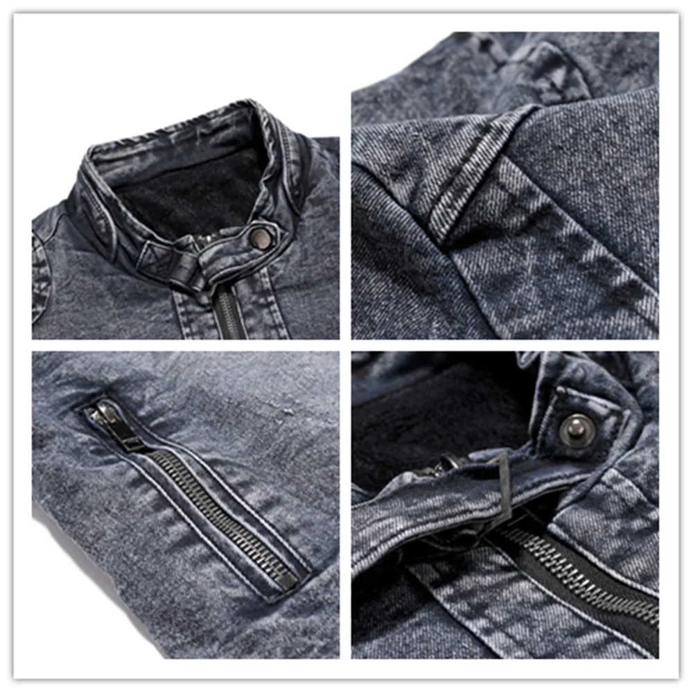 Осень-зима 2020, новая мода для отдыха, Мужская однотонная куртка со стоячим воротником на молнии и карманом для похудения, бархатная термо Мужская джинсовая куртка