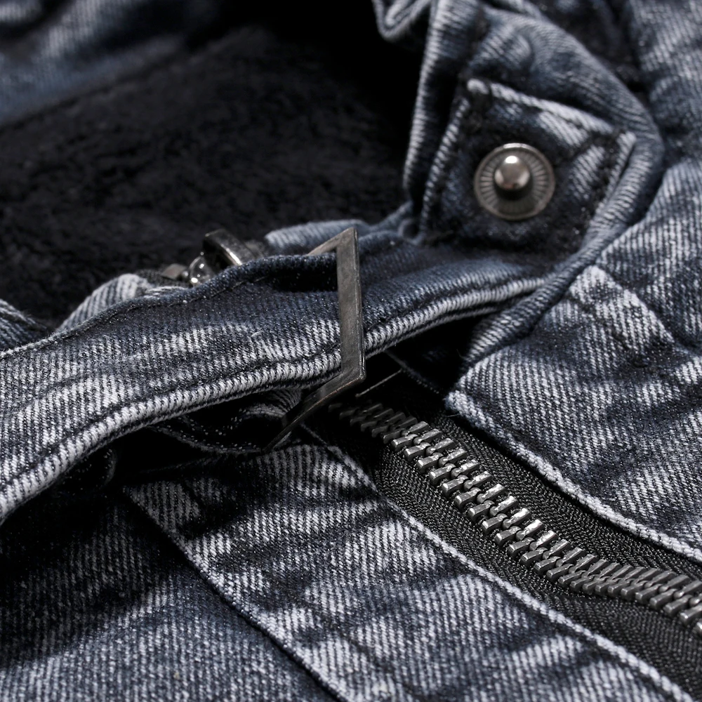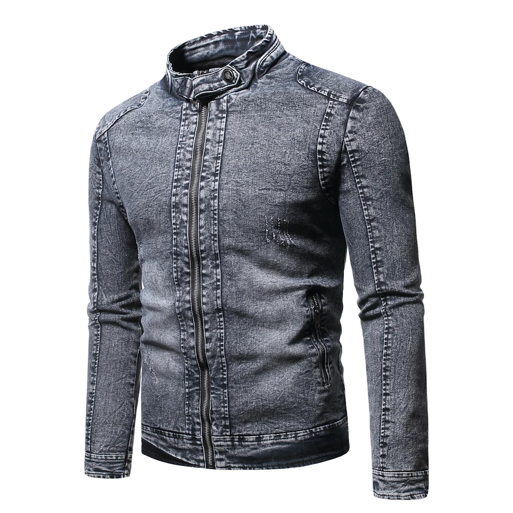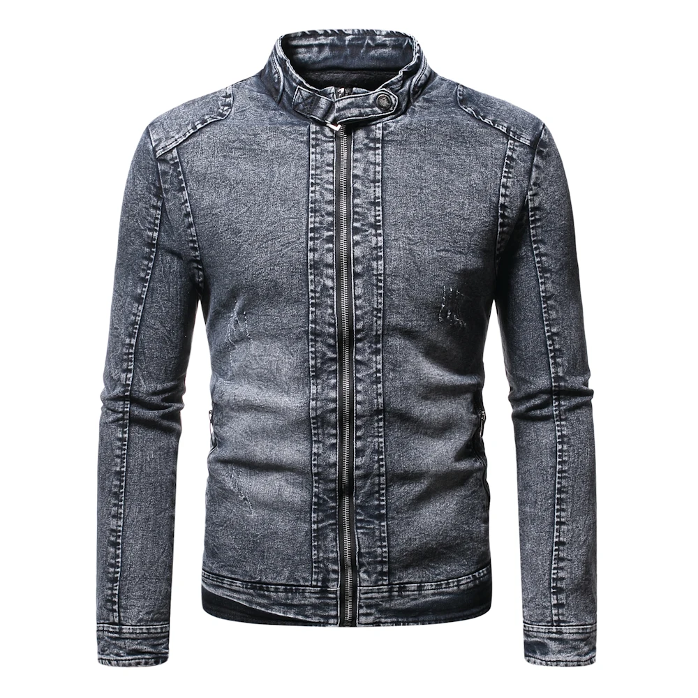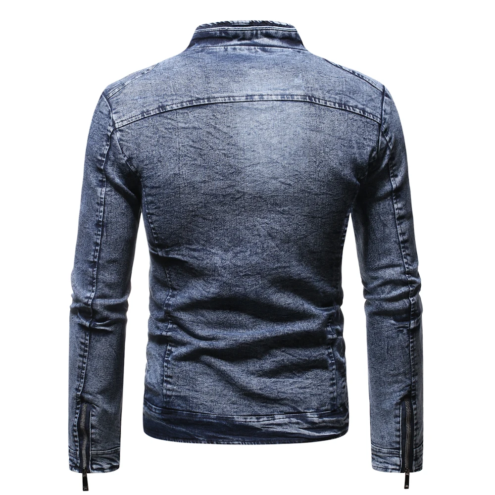 Осень-зима 2020, новая мода для отдыха, Мужская однотонная куртка со стоячим воротником на молнии и карманом для похудения, бархатная термо Мужская джинсовая куртка