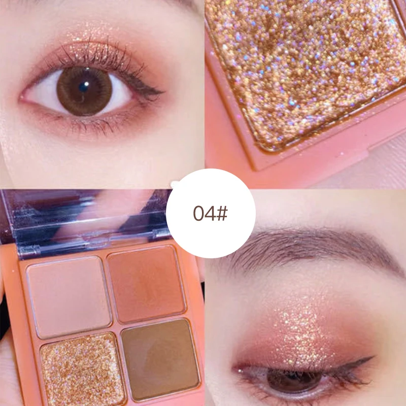 Палитра теней для век, 4 цвета, блестящие перламутровые водостойкие...