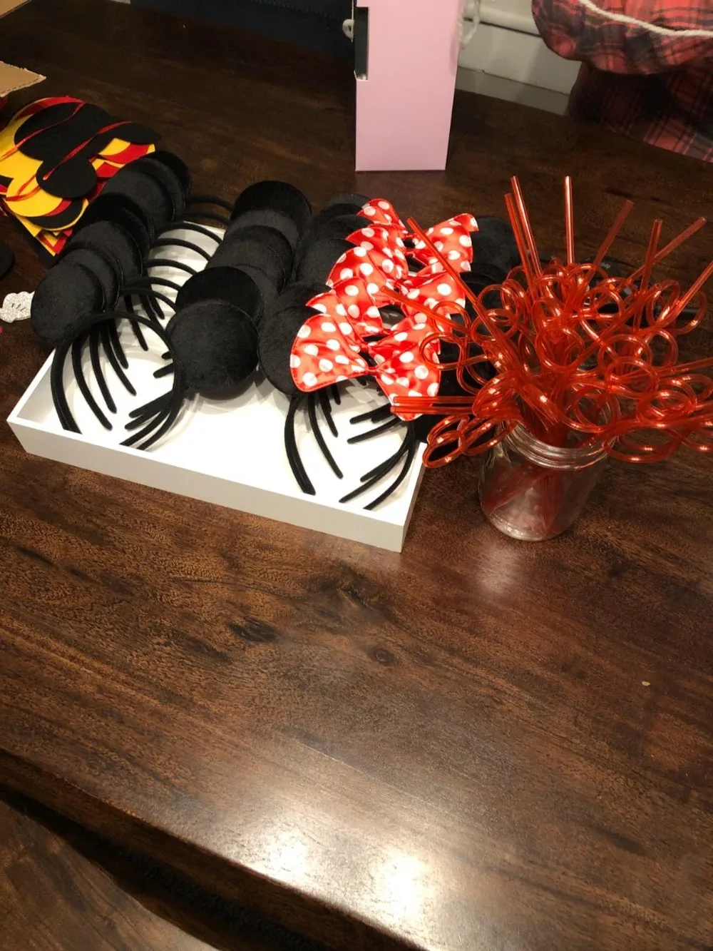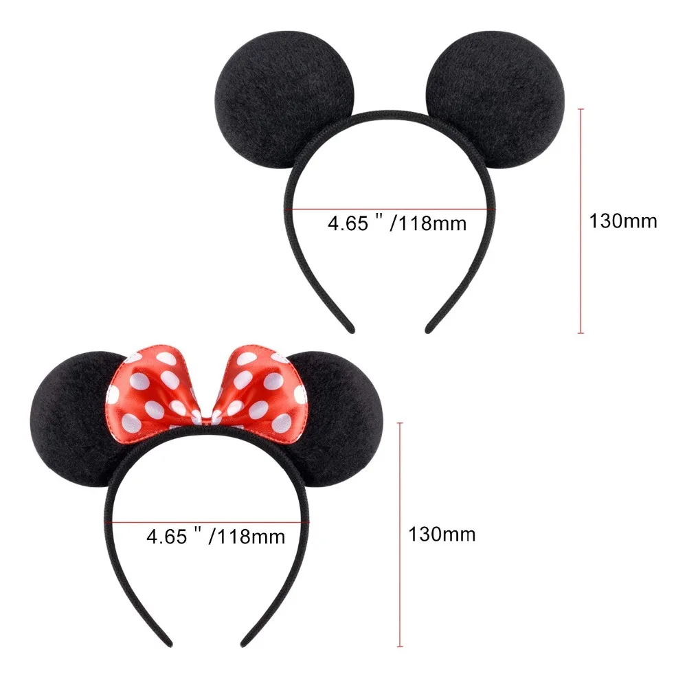Обруч с ушками Микки Мауса, однотонный черный, красный набор из повязки на голову с бантом, роскошный тканевый обруч с ушками Мауса Для вечерние, украшения
