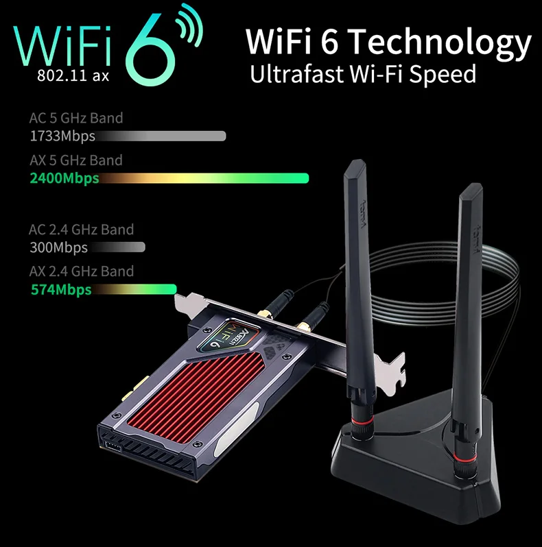 Двухдиапазонный 2400 Мбит/с беспроводной Wi-Fi сетевой адаптер 802,11 ac/ax BT 5,1 для рабочего стола