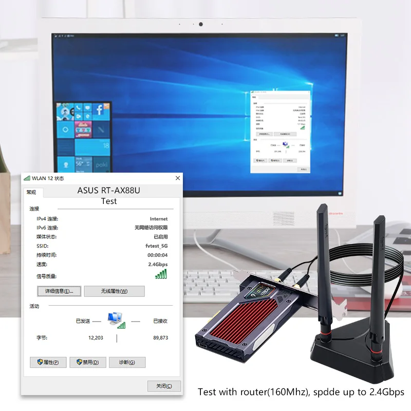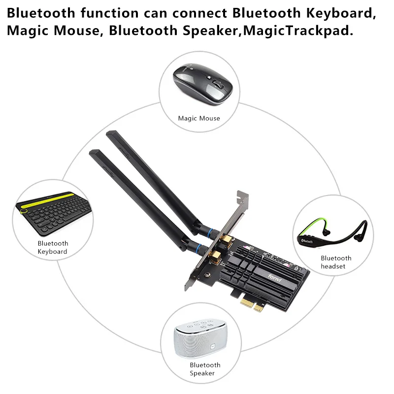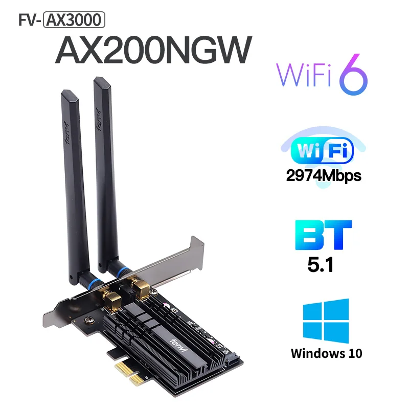Особенности: В FV-AX200 адаптер поддерживает Bluetooth 5,0 и 802.11ac/ax Wi-Fi 6, Включая функции wave 2, такие как каналы 160 МГц. Доставка до 2,4 Гбит/с и нисходящий канал MU-MIMO Как адаптер Wi-Fi 6 он поддерживает 802.11ax более 2x2 MU-MIMO антенны и пиковую полосу пропускания 2,4 Гбит/с, с поддержкой как полос 5 ГГц, так и полос 2,4 ГГц. Примечание: Если ваш роутер поддерживает 802.11ax, максимальная скорость может достигать 2,4 Гбит/с, Рассеивание тепла: благодаря хорошему радиатору чипы не будут повреждены.