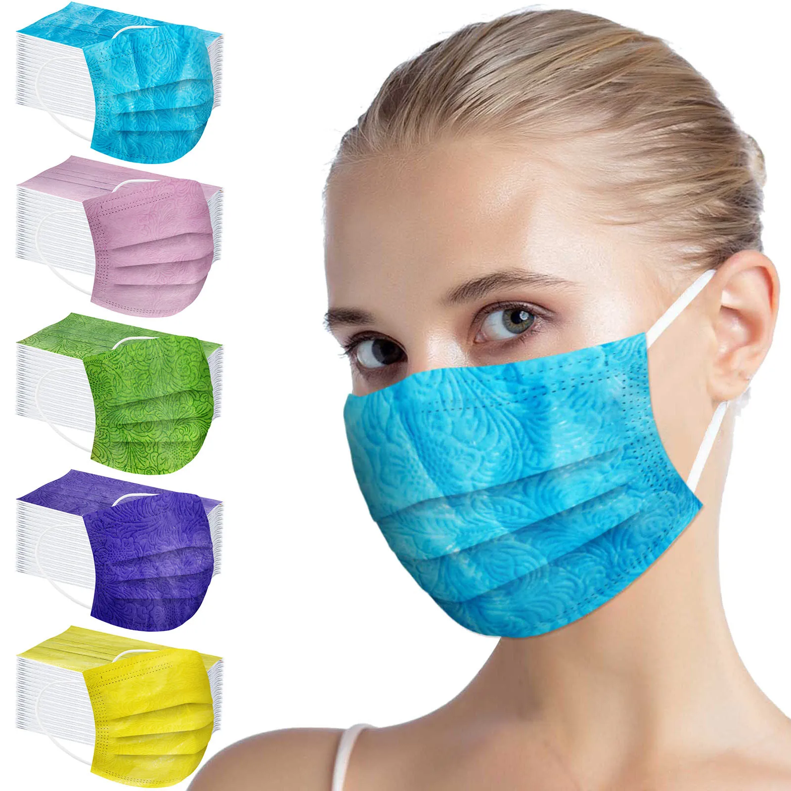 Женская одноцветная маска с принтом для взрослых, смешанный цвет, синий, розовый, одноразовая ткань, дышащая рельефная маска mascarillas