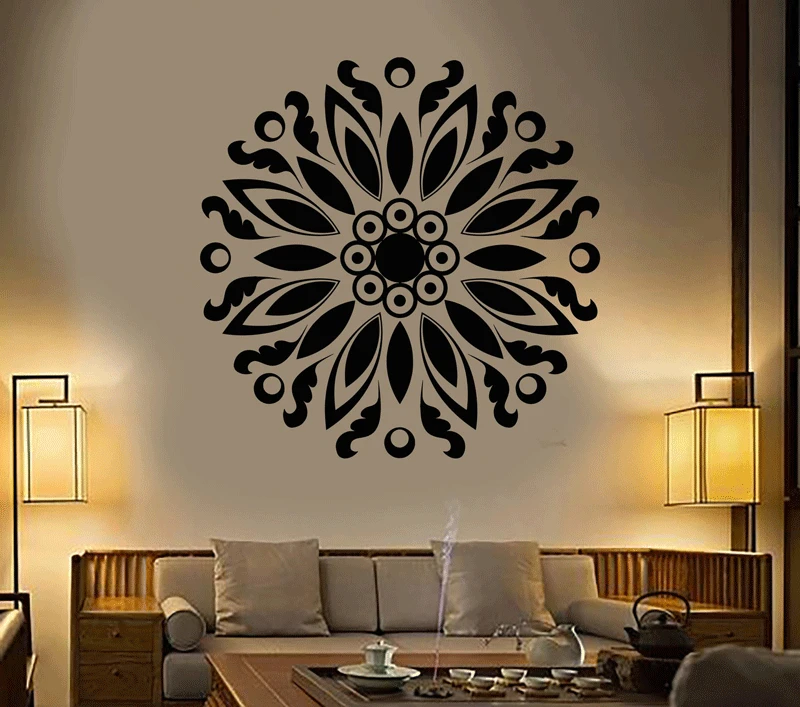 Виниловая настенная аппликация с мандалой, наклейка для йоги, тренировочная мебель для гостиной, украшение 5075