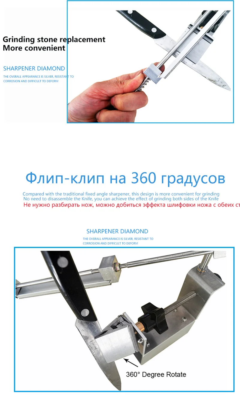 Металлическая точилка для ножей, портативная система шлифовки ножей с поворотом на 360 градусов, Алмазный точильный камень K2