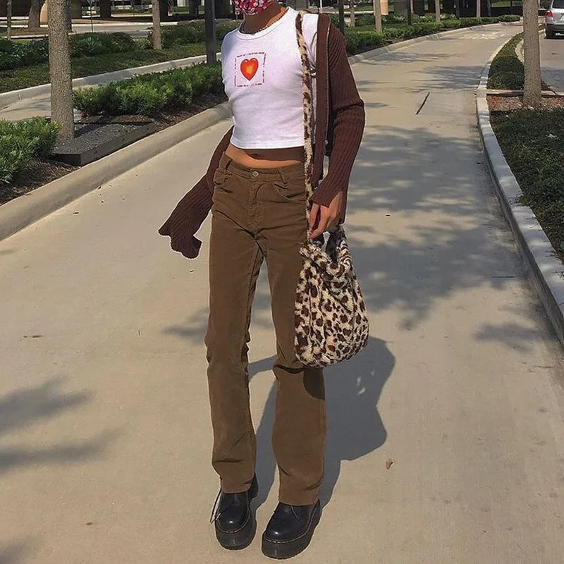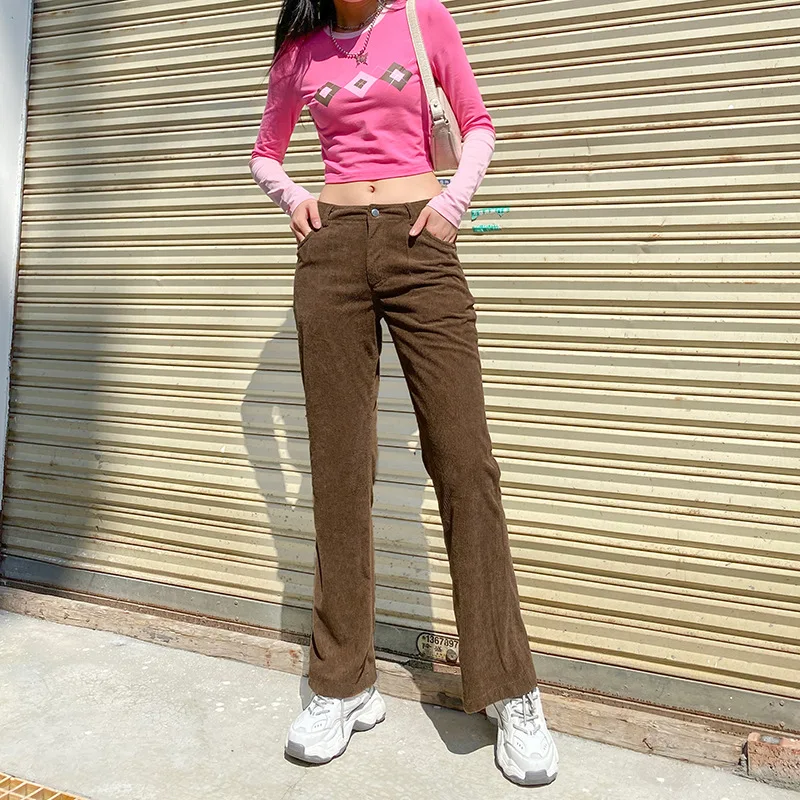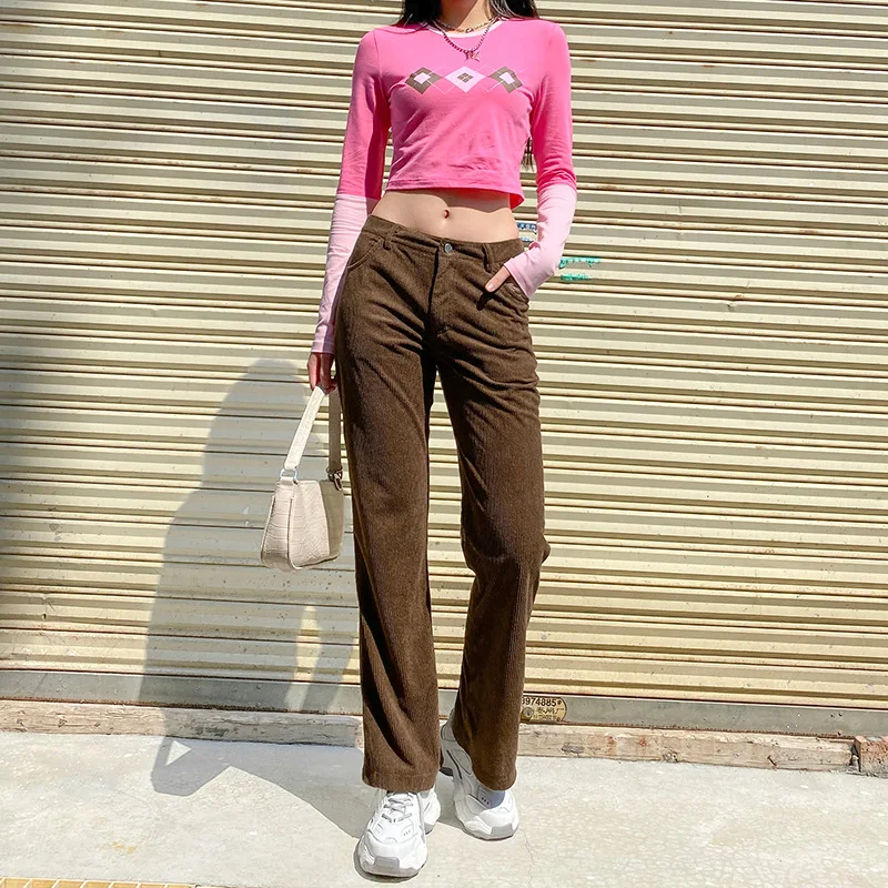 Осенние повседневные вельветовые длинные брюки 90-х, женские облегающие брюки с завышенной талией, Капри, Модные Винтажные спортивные брюки на молнии с карманами, Y2K