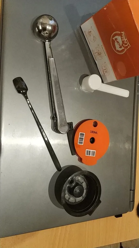 Отличная капсула, опробовала, работает) Брала на 60мл, порция соотвественно выходит маленькая, но для латте достаточно) Тк в первую отправку мою посылку на складе потеряли, продавец в качестве извинений положил две доп. ложечки, металлическую с зажимом и тоненькую металлическую. Пластиковая мерная ложка идёт в комплекте, плюс щеточка и сама капсула, все в коробочке) Мыть легко. Я довольна)