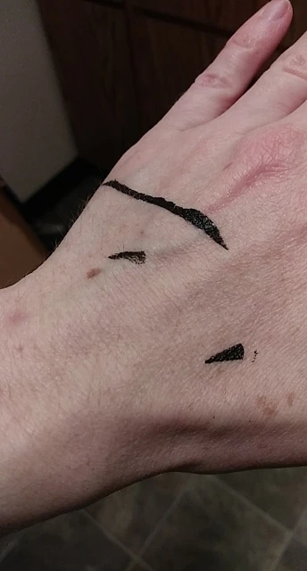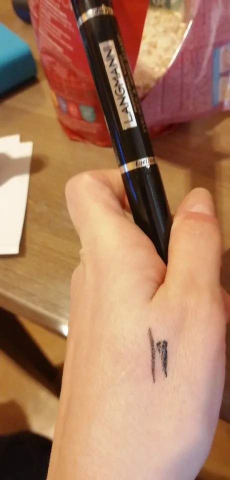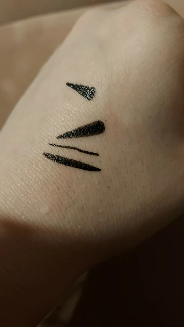 Очень быстрая доставка. Товар пришёл в пакете и своей фирменной картонной упаковке, которая помялась в пути. Подводка водостойкая, прям очень хорошо держится. Один минус — сторона со стрелкой сухая и сломанная (вообще невозможно использовать), поэтому 4 звезды.