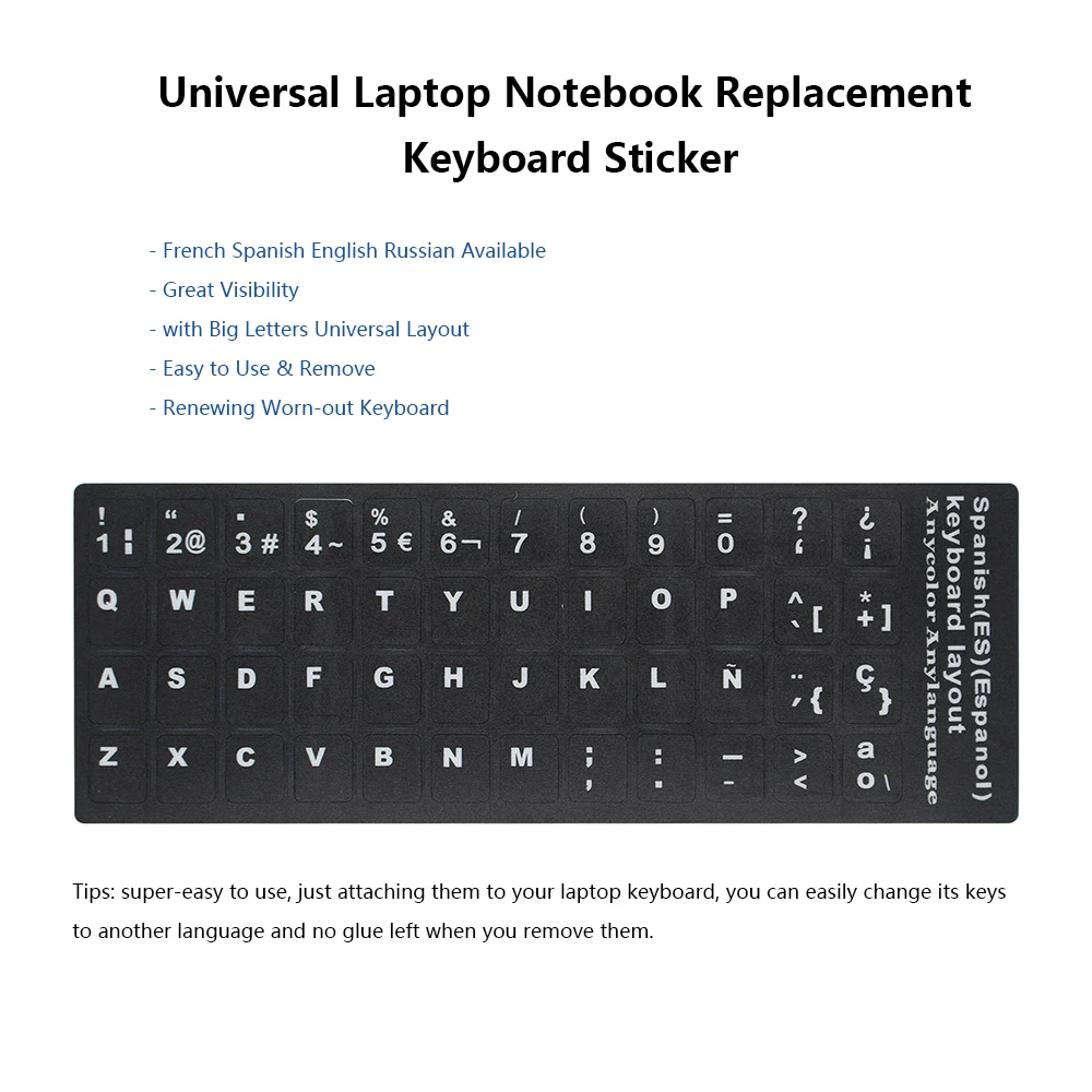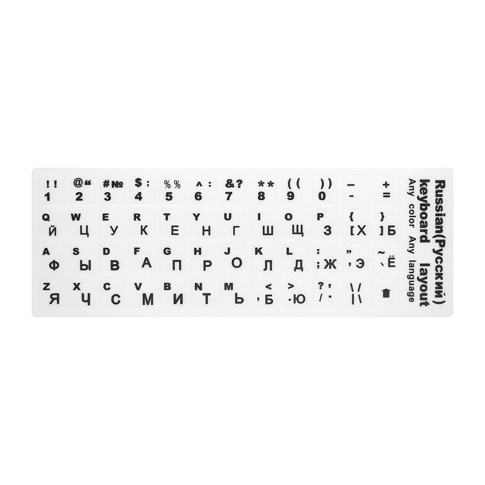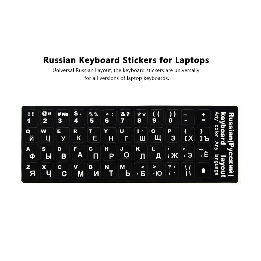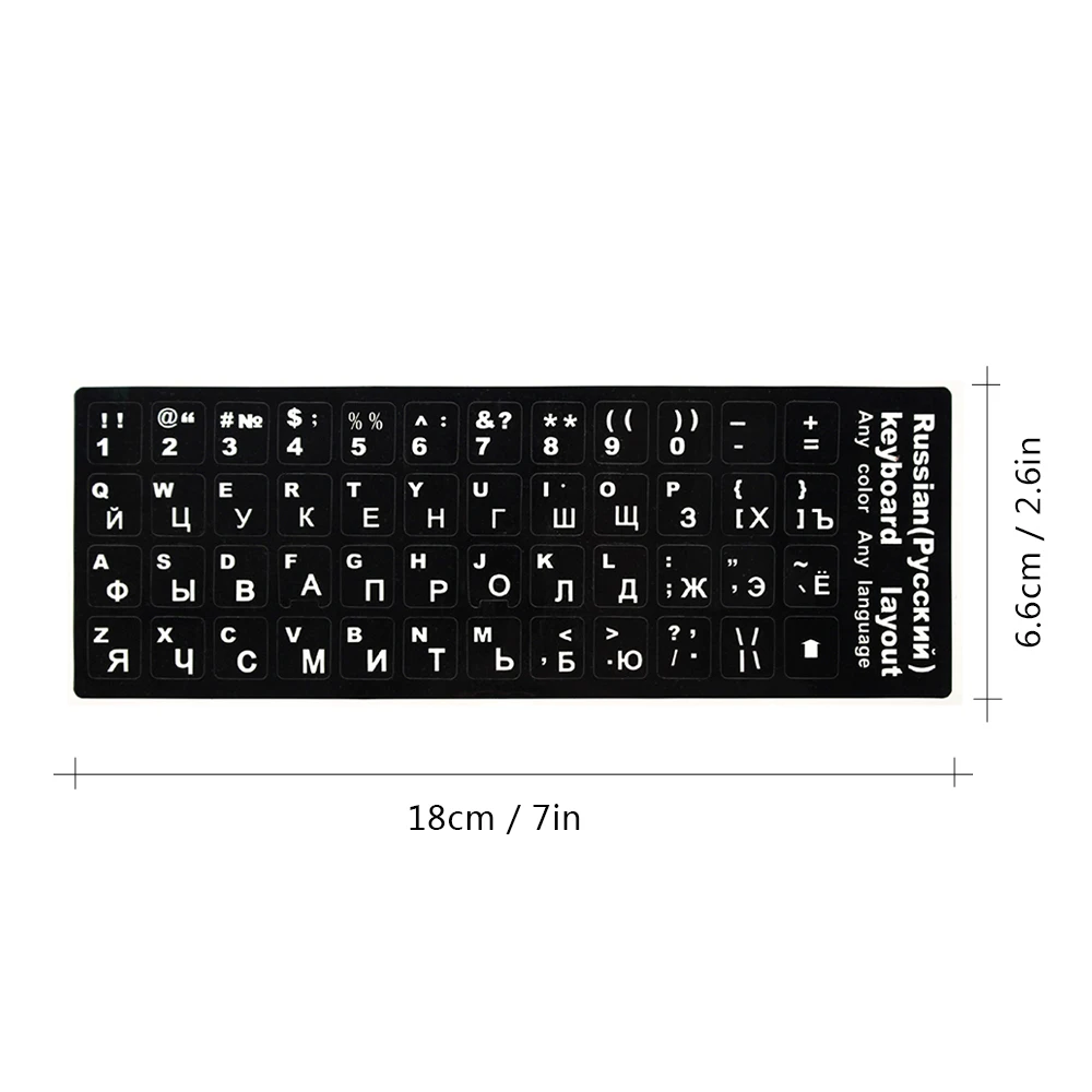 Эта наклейка на русскую клавиатуру с английскими и русскими буквами универсально подходит для всех версий клавиатуры ноутбука. Это отлично подходит для обновления изношенных клавиш клавиатуры или изучения языка.