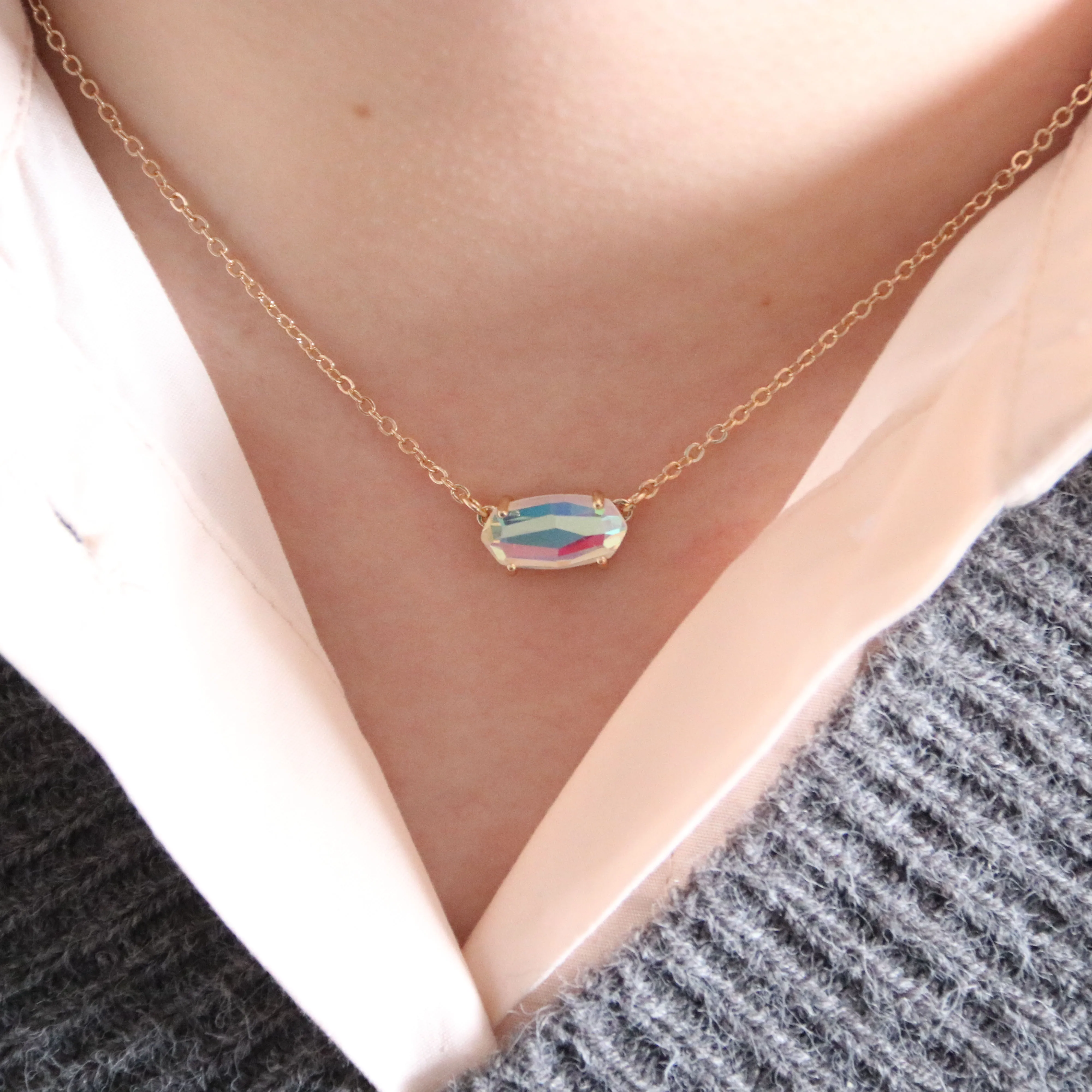 Овальное дихроическое стеклоОжерелье-чокер с камнями