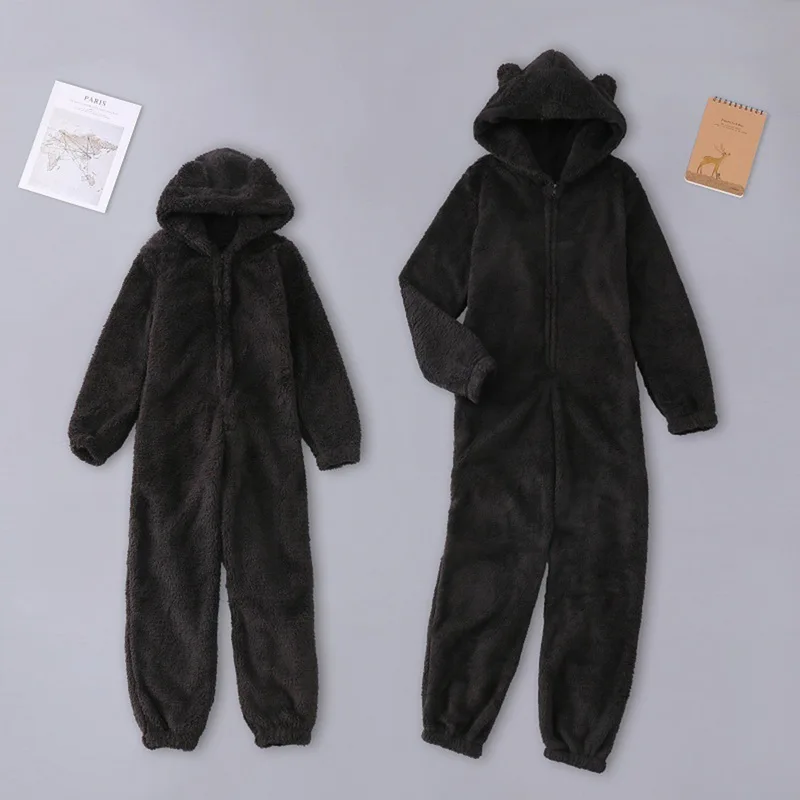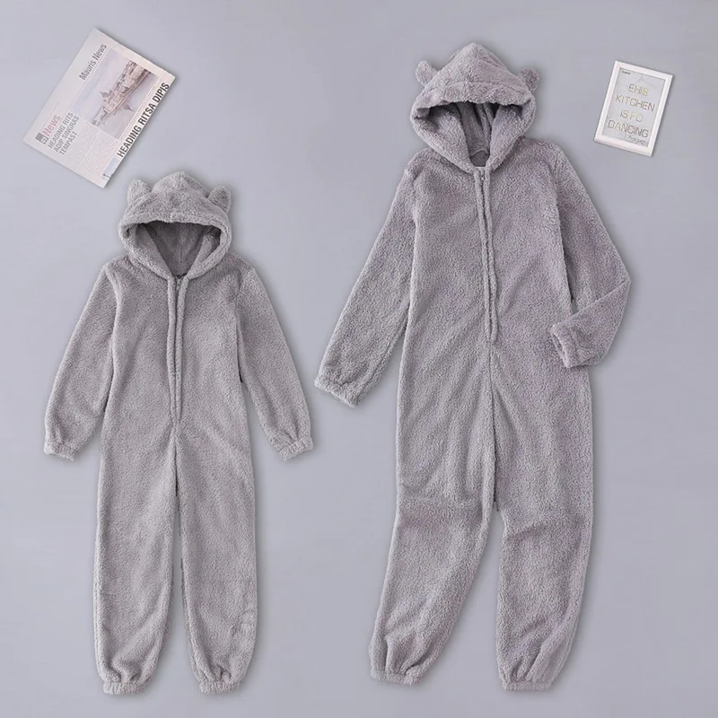 Фланелевые пижамные комплекты для женщин и детей, Семейный комплект, домашняя одежда, комбинезон с капюшоном, теплая зимняя и осенняя одежда для сна Мама и я