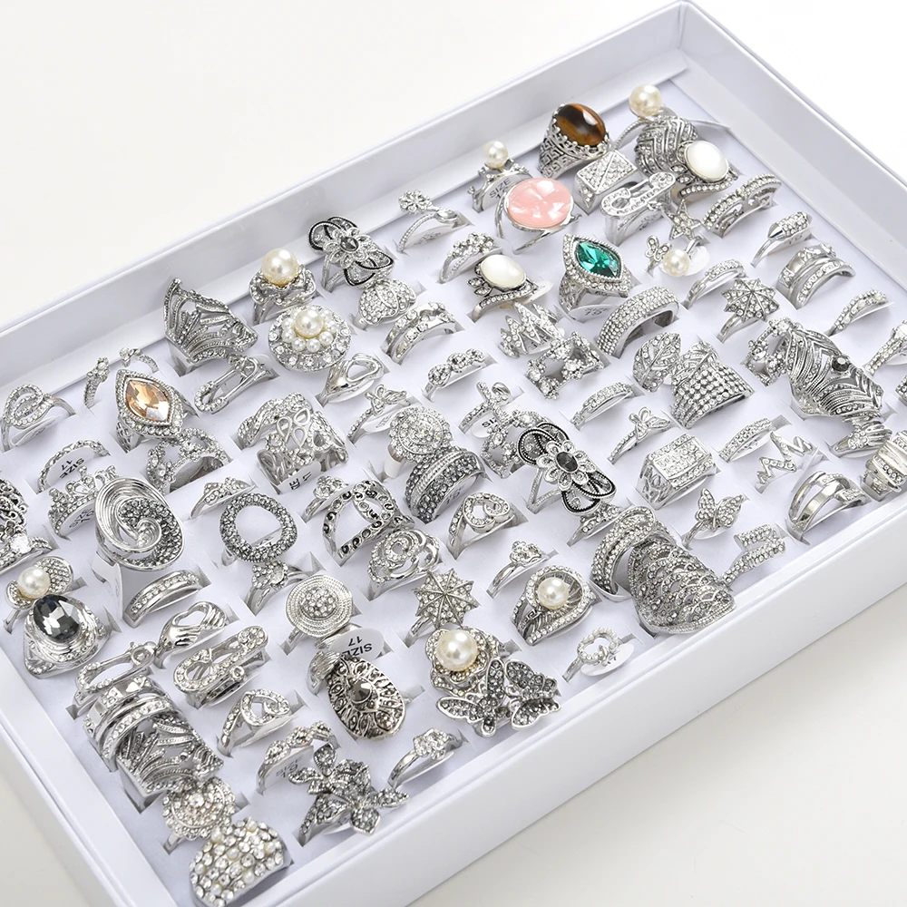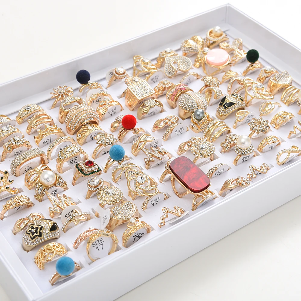 Изысканные женские кольца со стразами, 50 шт.лот