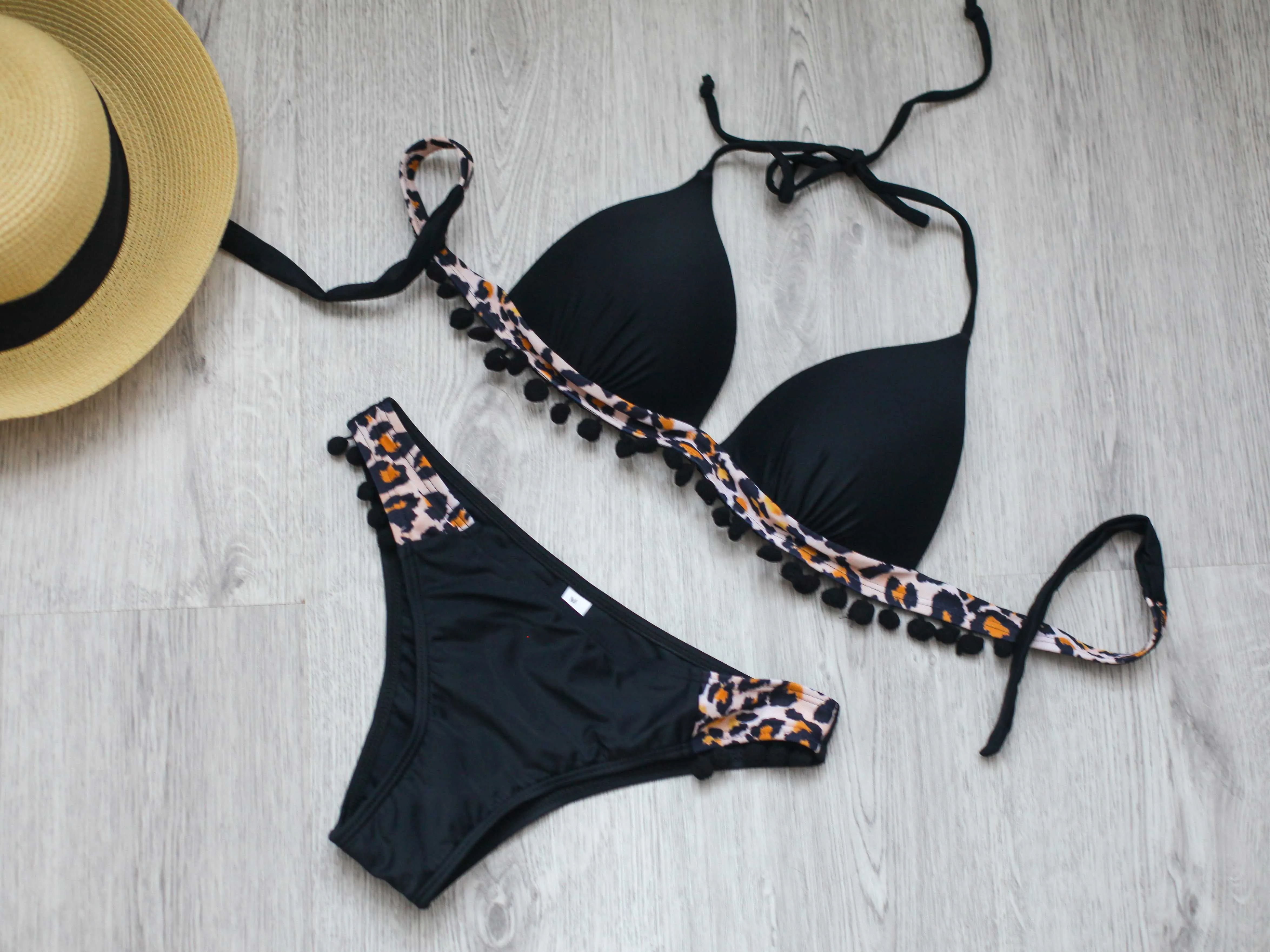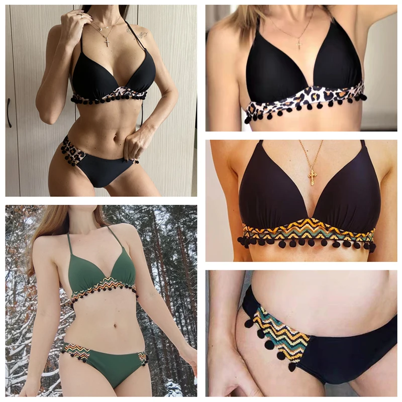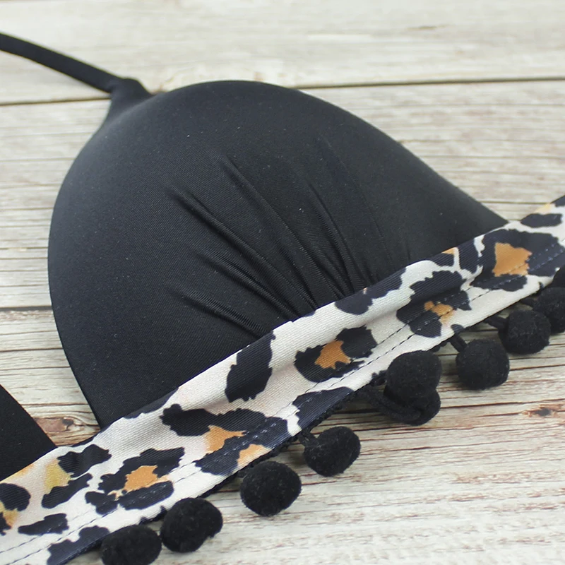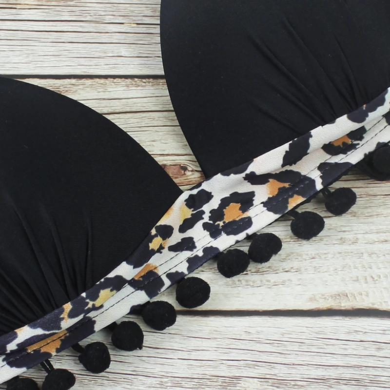 Бикини пуш-ап, новинка 2022, женский купальник с кисточками и черными шариками, купальный костюм с леопардовым принтом, комплект бикини, бикини, Бразильская пляжная одежда