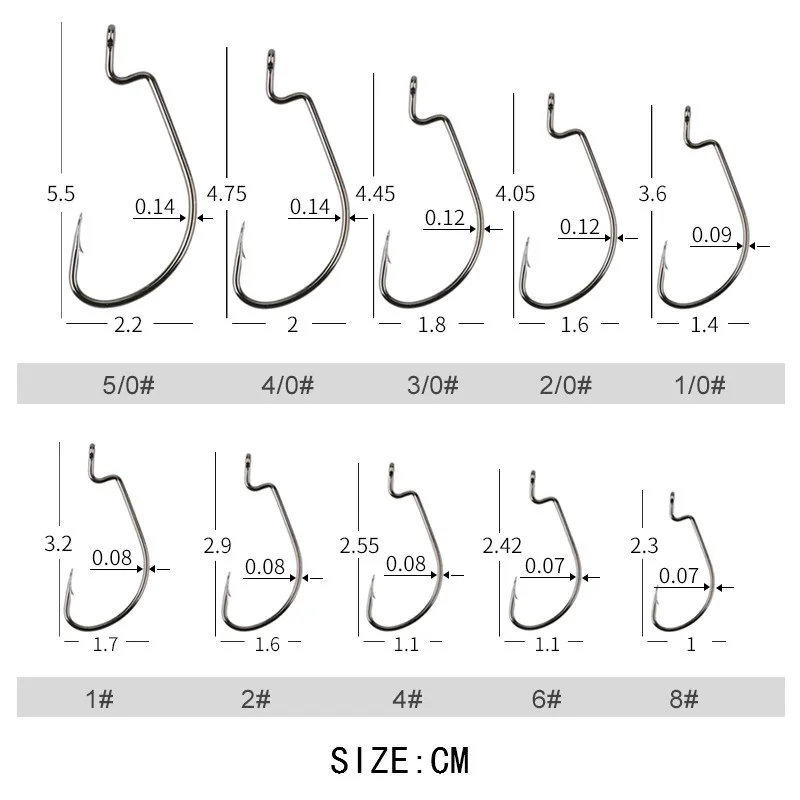 Рыболовный крючок, 20 шт., из углеродистой стали, с широким коленчатым офсетным крючком для рыболовных крючков Мягкая приманка в виде червей, 50 #-1 #, для ловли карпа