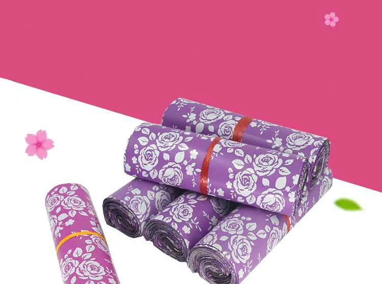 Водонепроницаемый пакет с цветочным узором в виде розы, 50 упаковок, полиэтиленовые конверты, пластиковые конверты для почтовых отправлений и доставки на заказ, экспресс-пакеты, самозапечатывающиеся