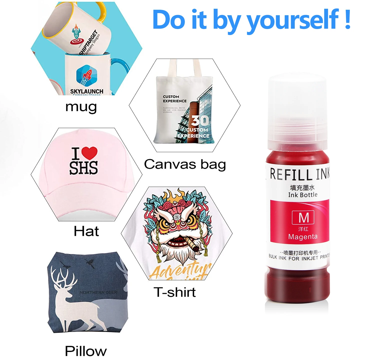 Чернила для сублимации краски-это краситель, который напечатан на конкретные предметы, такие как футболки, маски, кружки, бляшки, подставки и многое другое, с помощью тепла и давления. Тепло и давление помогают преобразовать краситель в газовое состояние, не превращаясь в жидкость. Сублимационные чернила высокого качества, водостойкие чернила. Чернила не размазываются из-за высокой температуры. Кроме того, чернила для сублимации краски дольше, чем другие чернила. Поскольку отпечатки на красителе, а не на чернильной основе, краситель становится частью продукта. Чернила для сублимации краски обладают большей точностью и производительностью печати и обеспечивают потрясающие результаты. Сублимированные продукты не трескаются, не отслаиваются или не смываются.