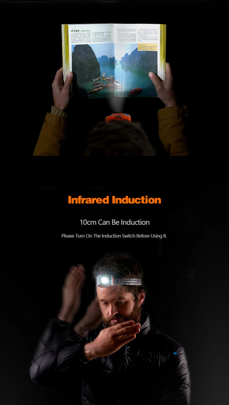 Налобный фонарь NatureHike, светодиодный, перезаряжаемый, USB, умный датчик движения, IPX4, водонепроницаемый, для кемпинга, пеших прогулок, бега