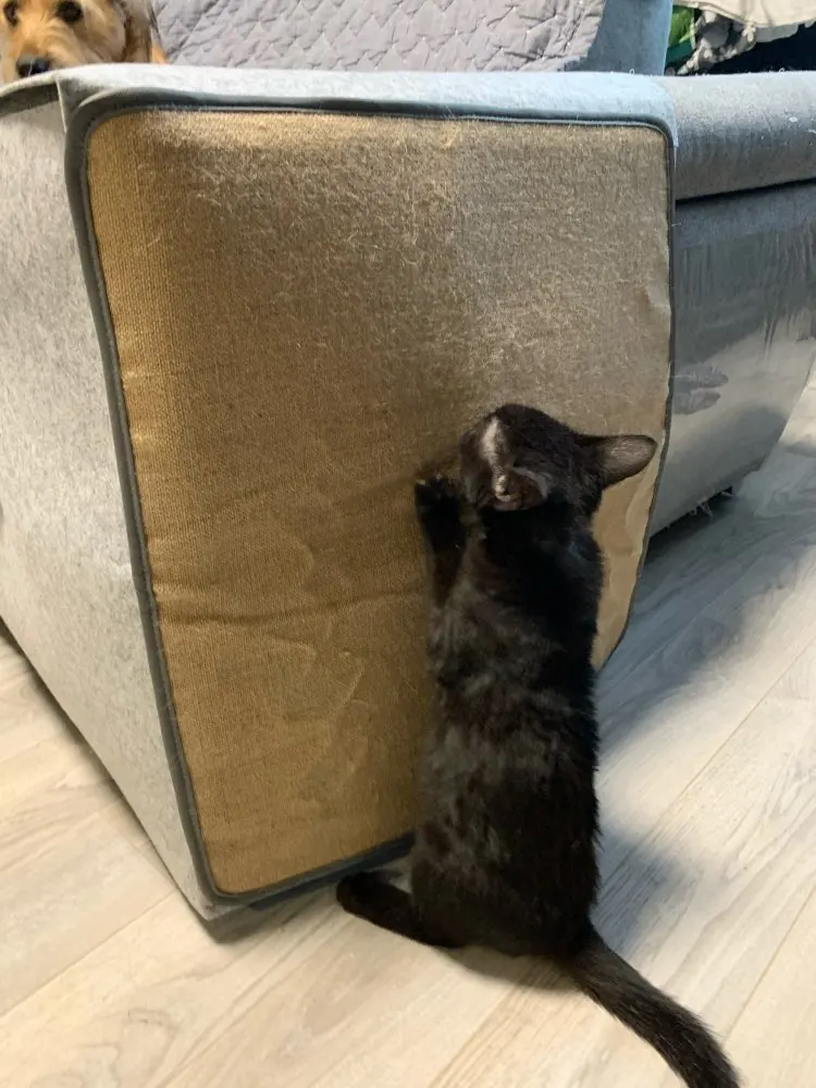 Он не очень плотно прилегает к углу, в моем случае это была противоположная сторона дивана, и мне пришлось вырезать его и адаптировать, чтобы он соответствовал подставкам на этой стороне, но Удаление этого довольно хорошо, Кошки больше использовали ткань войлока, чем область царапин, которая является тканью сумки, и кажется, что она не звонит им много. Я обязательно попрошу еще раз, но больше, потому что они не любят, я думаю, и они не хотят царапать там Доставка заняла много времени, чтобы прибыть