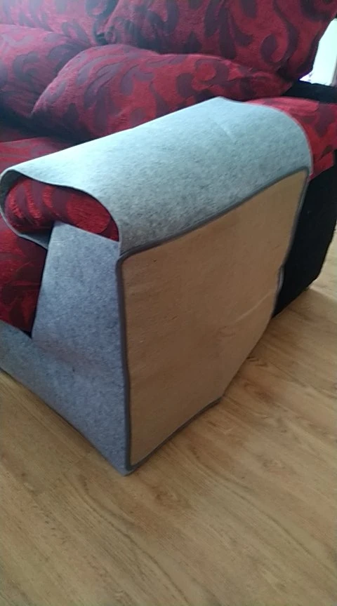Он идеально подходит к руке моего дивана, я поставил его случайно, так как моя кошка не царапается, но это никогда не известно.