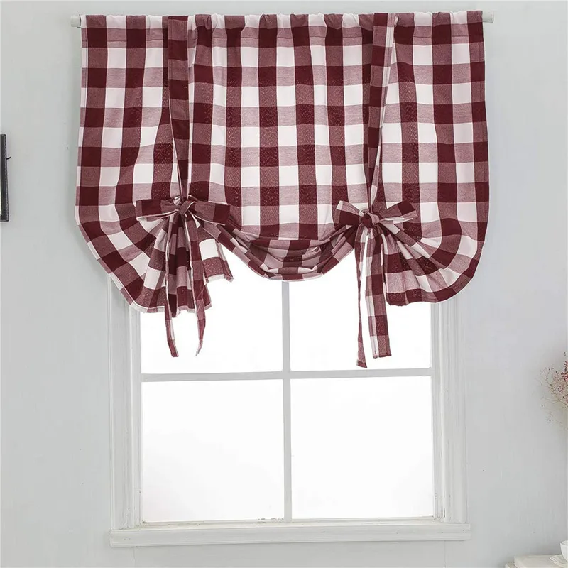 Кухонная короткая оконная штора в клетку с отверстием, регулируемые...