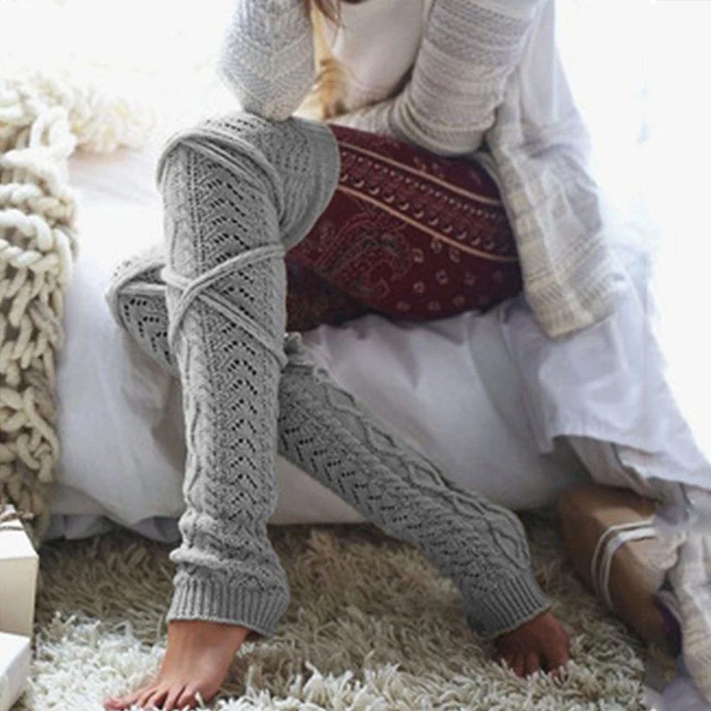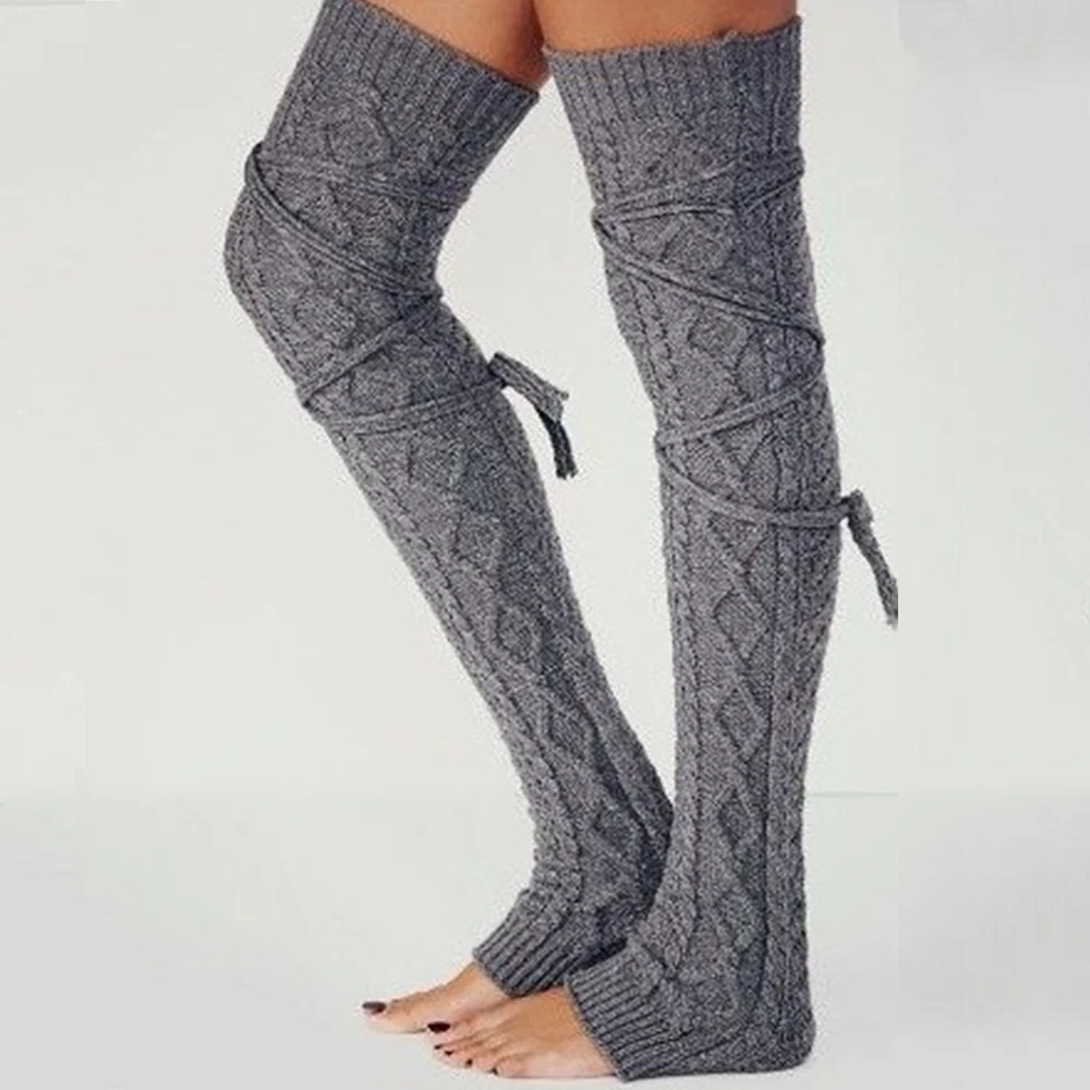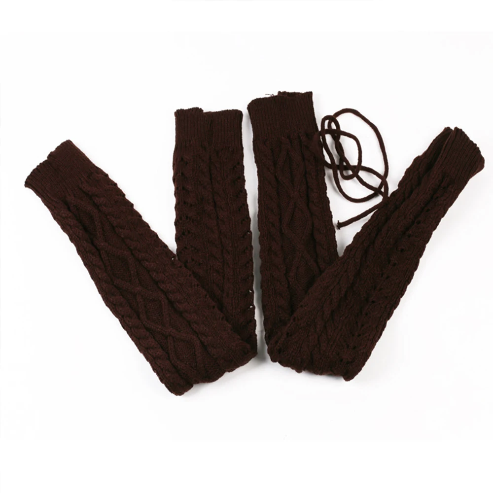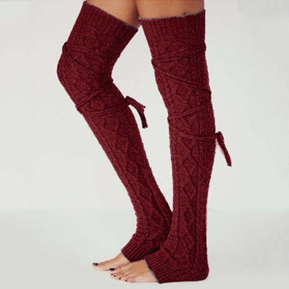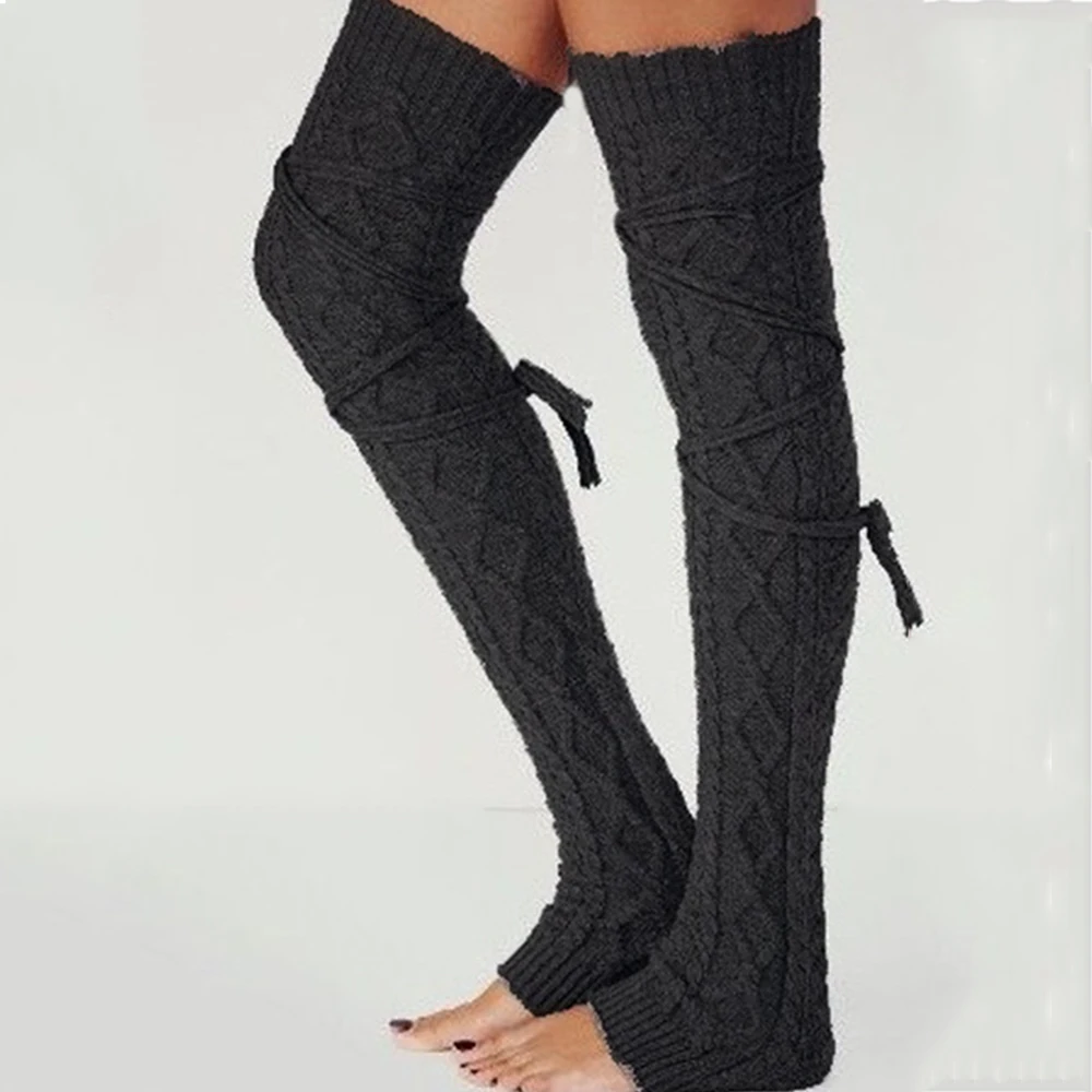 1 пара, новые женские однотонные носки вязаные зимние длинные носки без пятки на шнуровке с 2 веревками, высокие сапоги до колена, чулки, Леггинсы теплые гетры