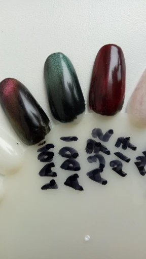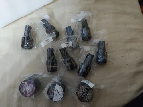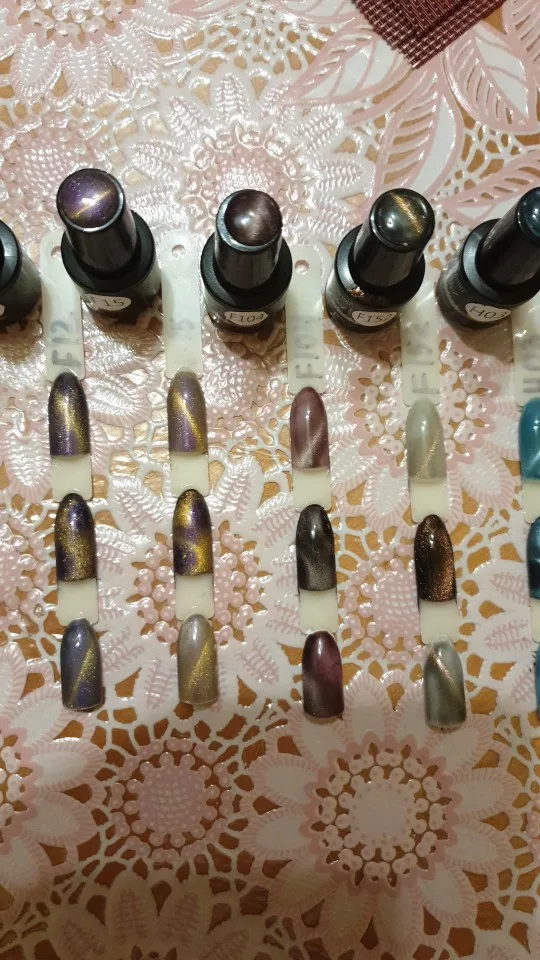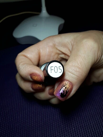 Шло 2 месяца. Но пришло. Все супер упаковано. Пузырьки отлично закручен. В двойной упаковке. Продавцу за это отдельное спасибо. Нумерация лаков есть, как на лаке, так и на отдельном пакете. Все на высшем уровне. Лак реагирует на магнит. Делала на чёрной подложке. Спасибо правда с фиолетовым отливом и шиммер коричневый. В общем красиво