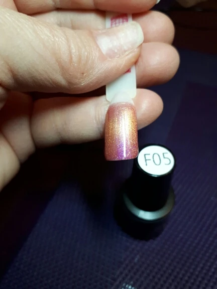 Цвет очень красивый, гораздо красивее, чем на картинке! Но! Во первых, ооочень долгая доставка, два месяца! И во вторых, маленький флакон, на хорошую длину хватит на пару раз только... На фото сравнение с обычным гель лаком.