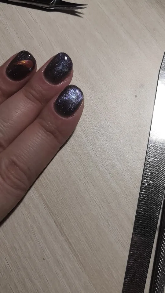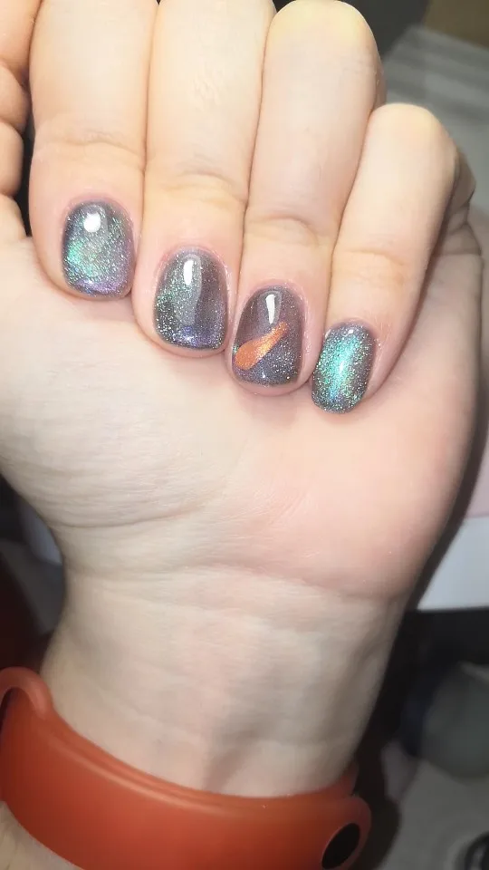 Действительно кошачий глаз, на типсы наносила без базы и основного цвета.
