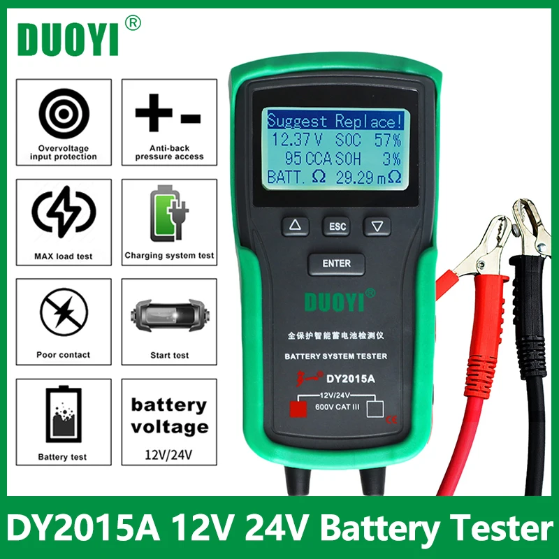 DUOYI DY2015A 12V 24V автомобиль Батарея тестер